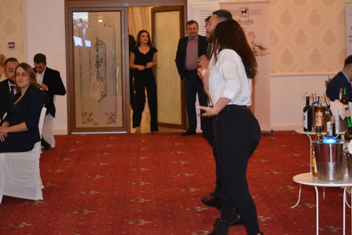 Atmosfera sobră a fost spartă de trupa de dans The Sky Dance Iași, a cărei fete au dansat atât pe ring, cât și printre invitați.