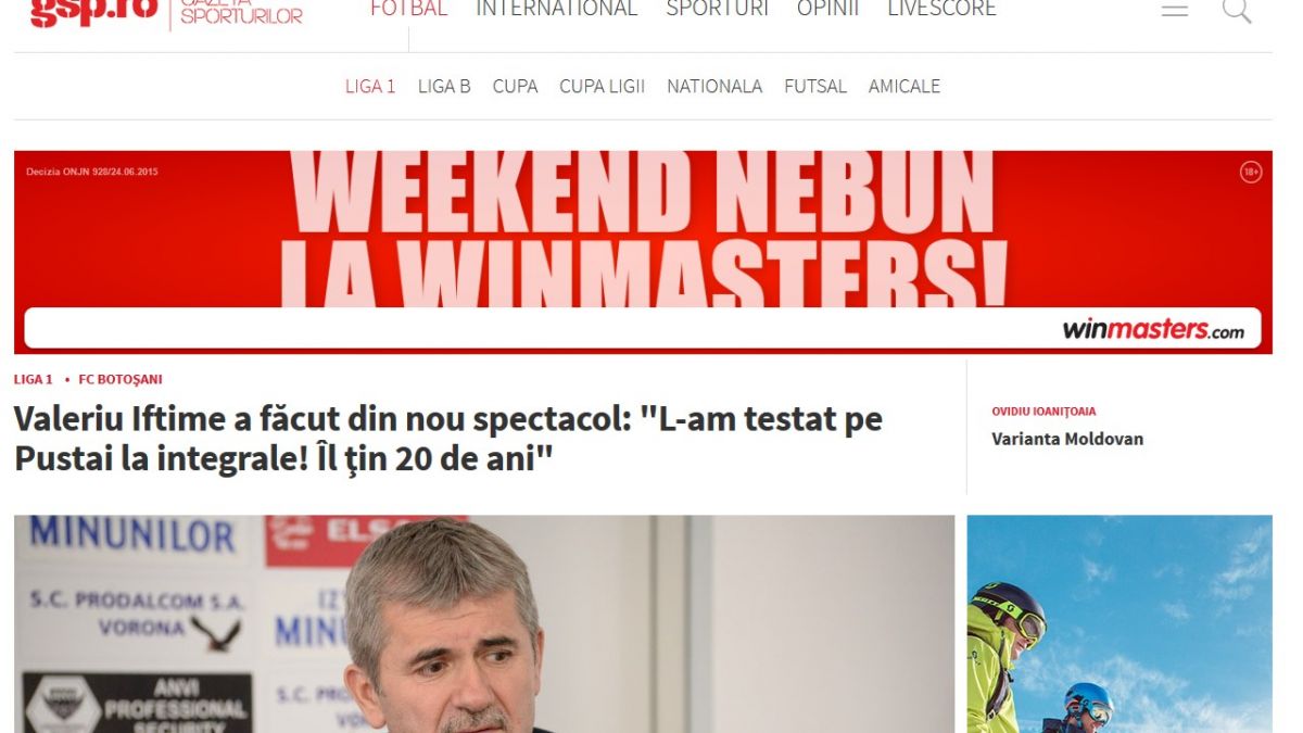 Ironiile sale au fost preluate, printre altele, de Gazeta Sporturilor, Fanatik și Sport.ro. Valeriu Iftime are și titlu de doctor. (S.B.)