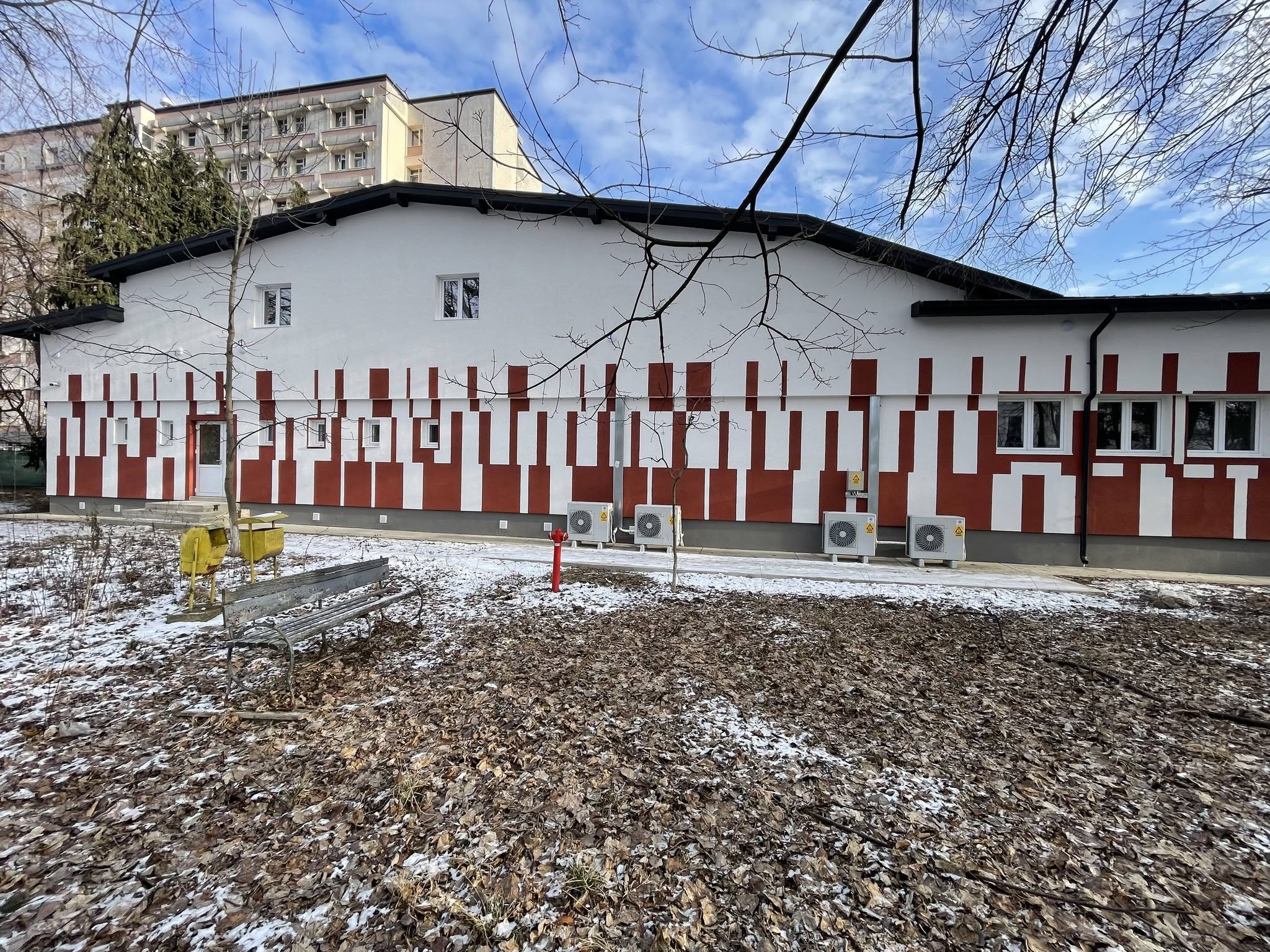 Au fost refăcuți pereții afectați de fisuri, a fost reparat trotuarul din beton armat și a fost realizată hidroizolatia fundației. Construcția a fost anvelopată cu termosistem din vata bazaltica de 15 cm grosime iar tâmplăria interioară și exterioară existentă a fost înlocuită. Au fost refăcute tencuielile exterioare, finisajele interioare. Au fost termoizolate atât planșeul superior din pod cu polistiren expandat ignifugat de 30 cm, cât și planseul de la parter (peste subsol) cu polistiren EPS ignifugat de 10 cm grosime.