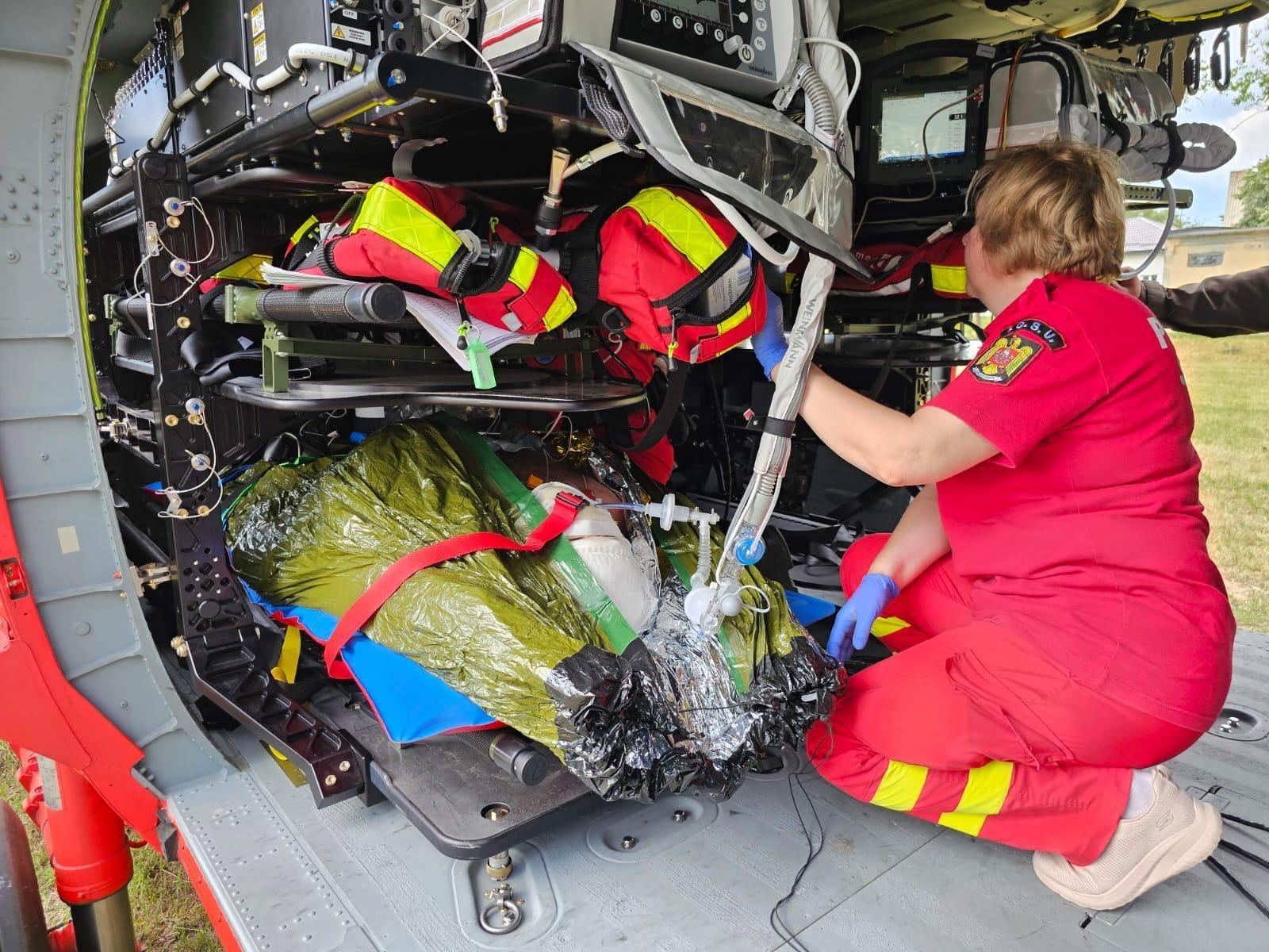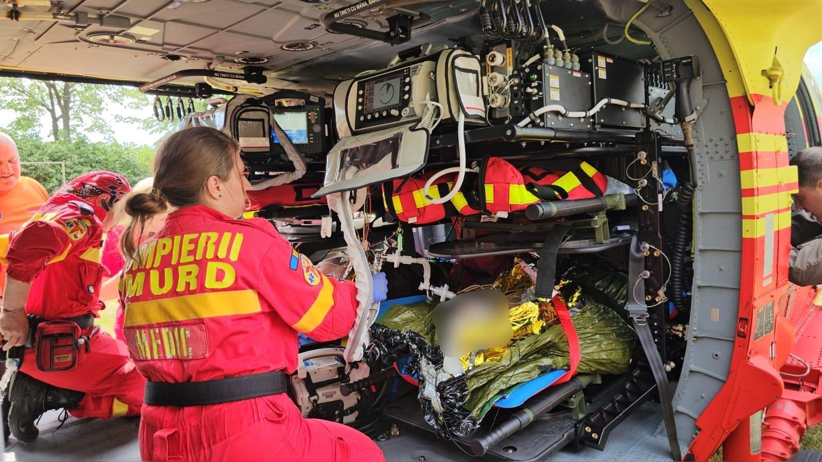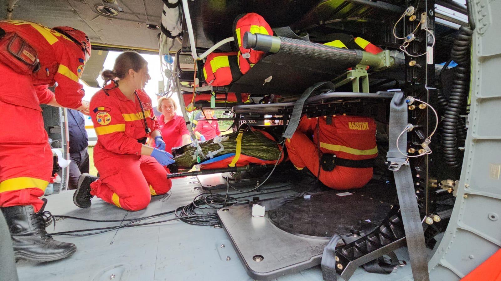 Au fost transportați cu elicopterul SMURD Black Hawk care a venit din București pentru a asigura suportul necesar pentru victime.