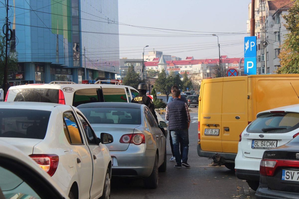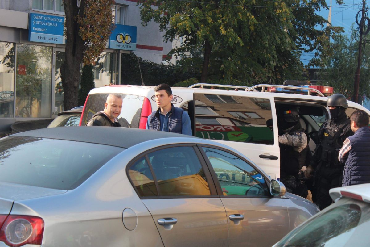 Din interior au coborât luptători ai Serviciului Acțiuni Speciale (SAS), cunoscuții „mascați” care au sprijinit două echipaje de poliție să ridice pe un tânăr care se afla în autoturismul oprit cu forța în trafic.