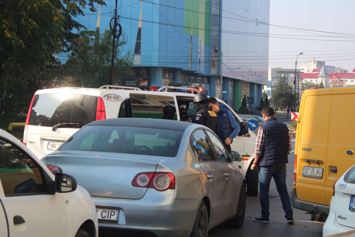 Trecătorii care s-au aflat aproape de sensul giratoriu de lângă Uvertura Mall au urmărit cu răsuflarea tăiată cum un autoturism marca Volkswagen Passat este blocat în trafic de o dubă ce aparține Ministerului Afacerilor Interne (MAI).