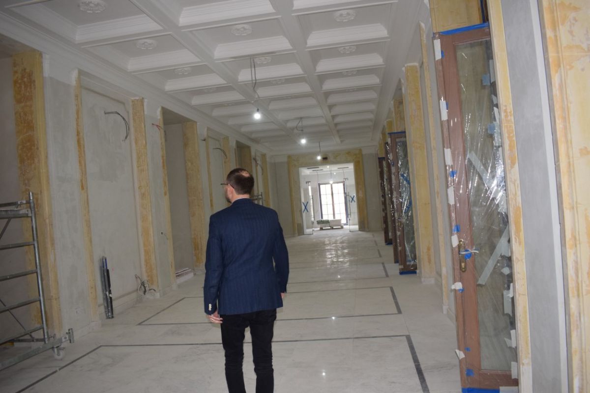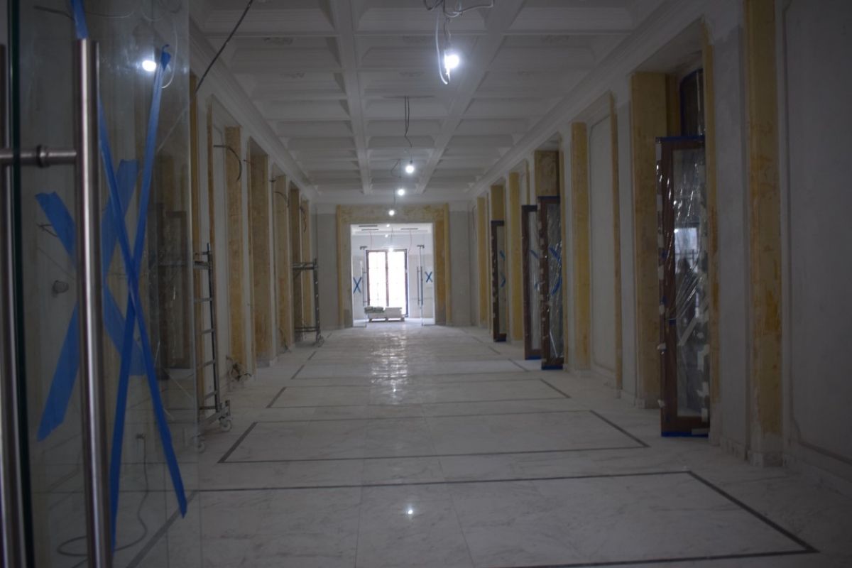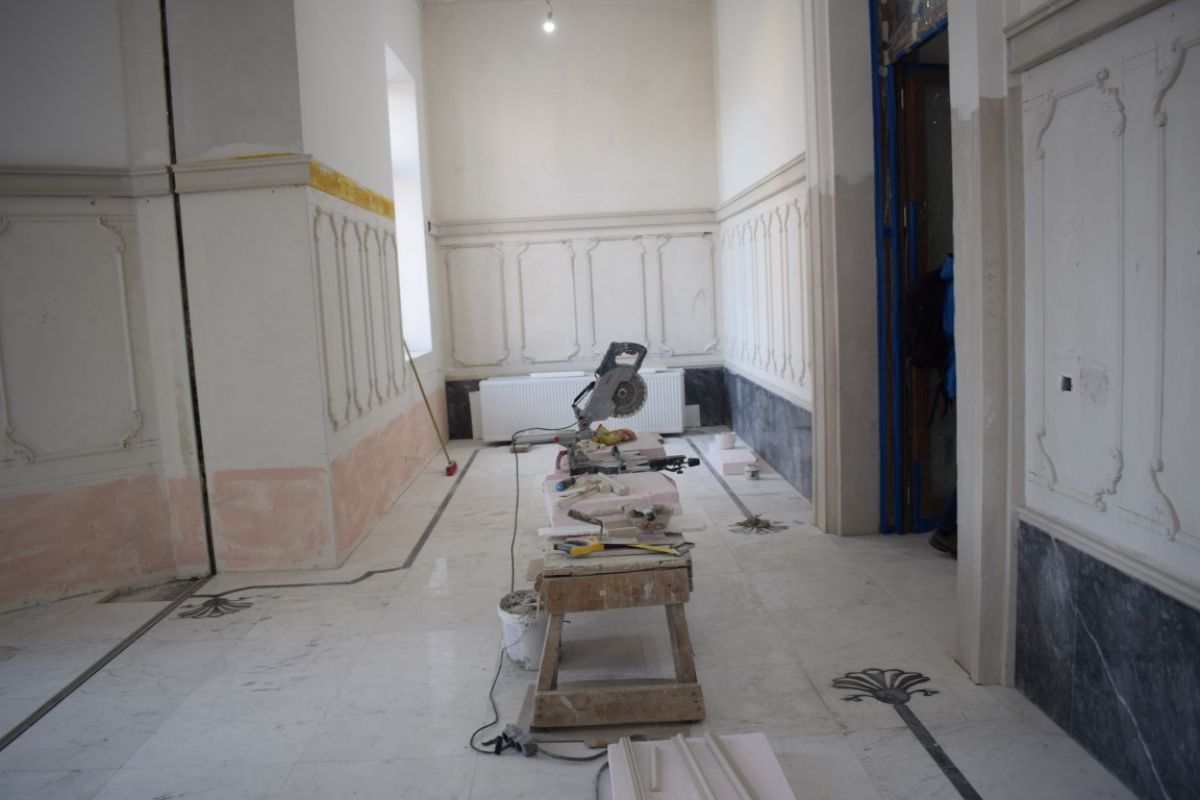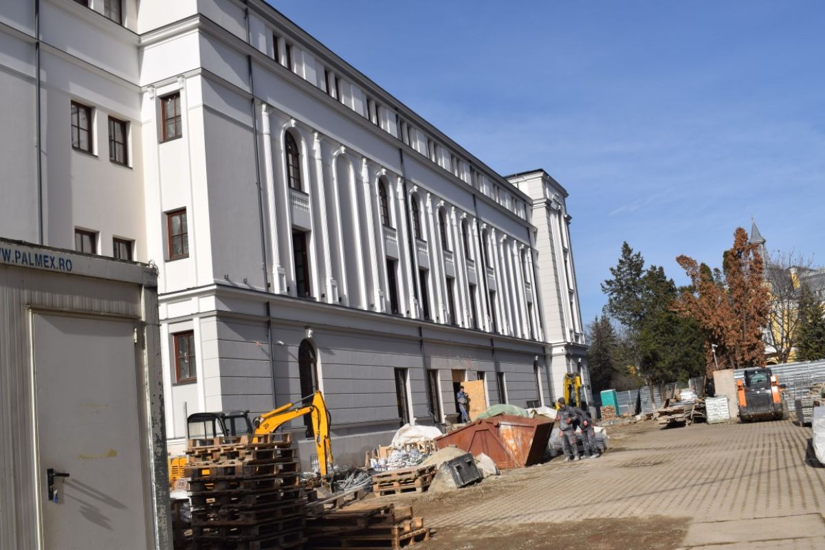 Per total, lucrările au fost realizate într-un procent de 85%, iar inclusiv licitațiile pentru dotările din săli sunt pe ultima sută de metri. Muncitorii realizează finisajele interioare și montează diferite ornamente inclusiv cu foiță de aur.