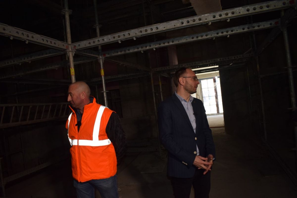 Primarul Cosmin Andrei a organizat astăzi, 9 februarie 2024, o vizită de lucru pe șantierul de la teatru pentru ca botoșănenii să fie informați cu privire la stadiul lucrărilor de modernizare.