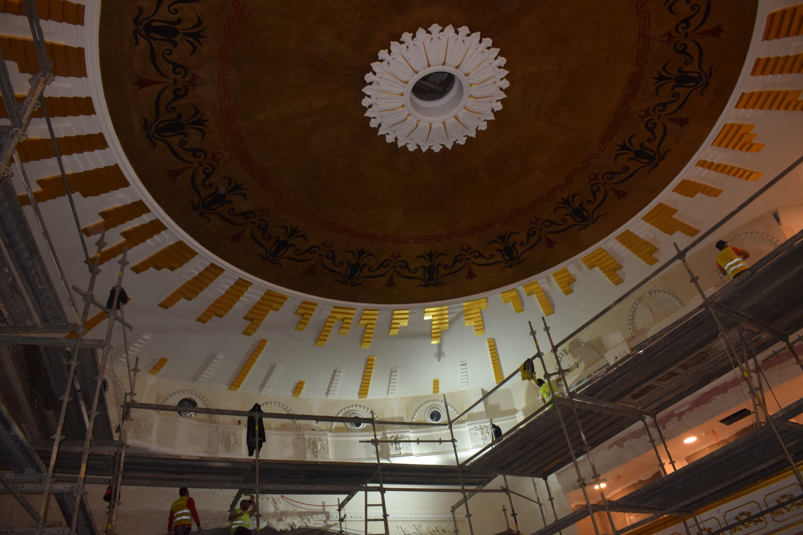 Gradul de realizare a lucrărilor este de 97%, iar muncitorii sunt în sala de spectacole. Aici mai sunt lucrări de realizat.