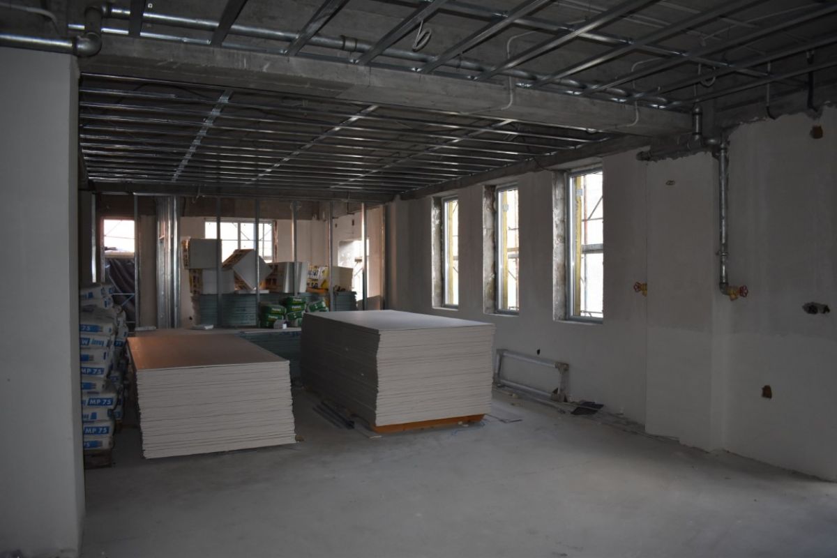 Se lucrează la finisajele interioare, urmând ca într-un interval de timp de aproximativ două săptămâni să demareze echiparea adecvată a spațiilor cu corpuri iluminat, prize electrice/voce-date, dar și radiatoare.