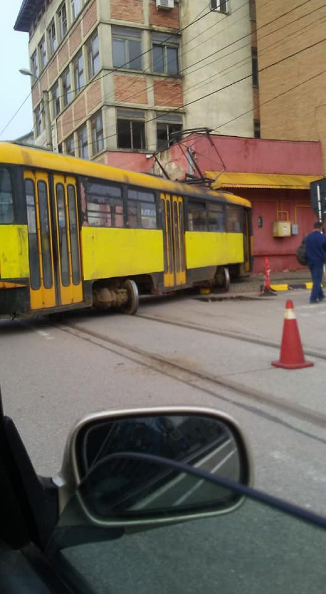 Incidentul s-a produs, în această dimineață, pe linia 101 a tramvaiului, în zona fostului Cinematograf Luceafărul.
