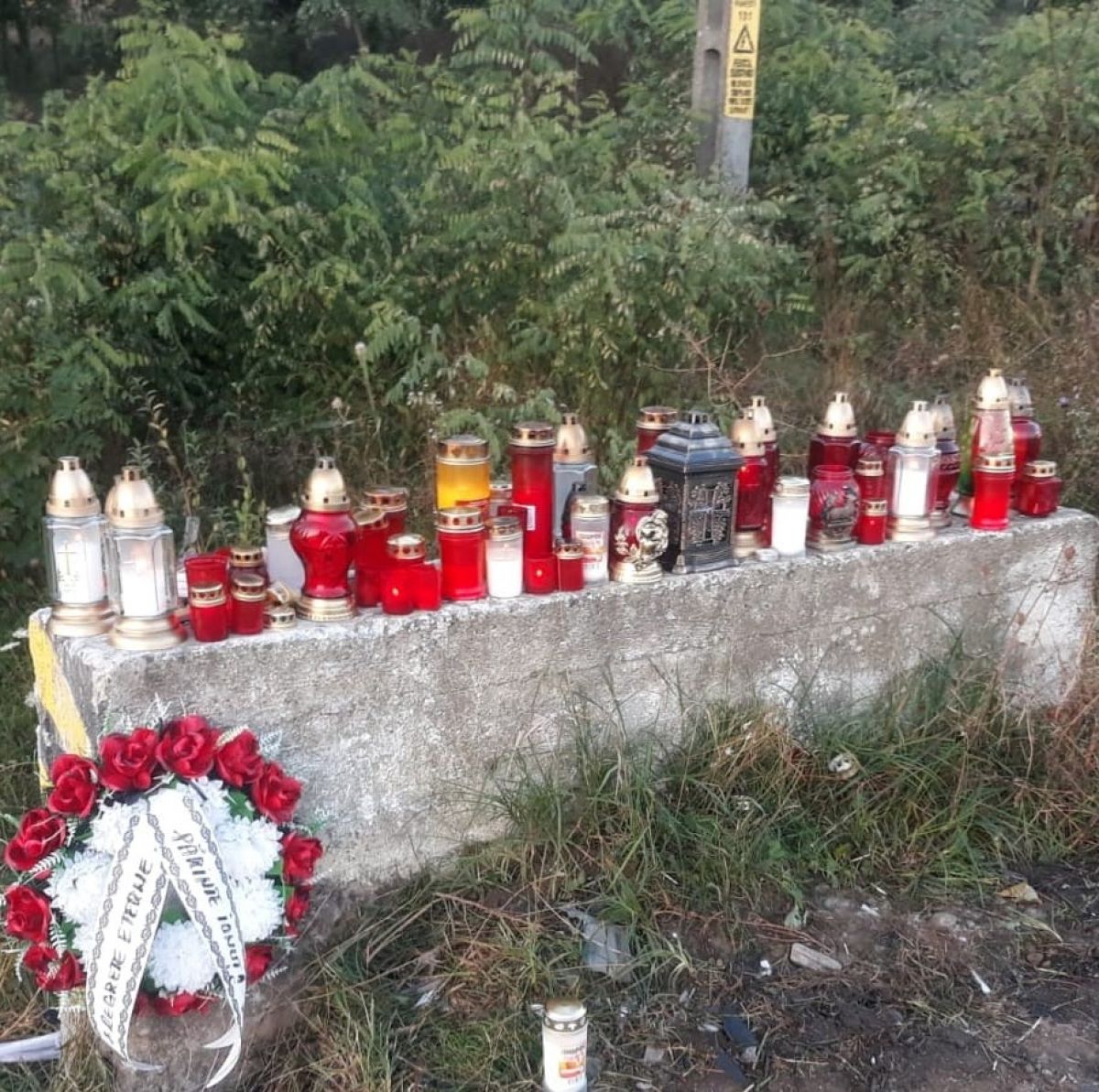Flori și lumânări la locul unde a murit preotul Ionuț Miorcăneanu, duminică, în urma unui teribil accident rutier.