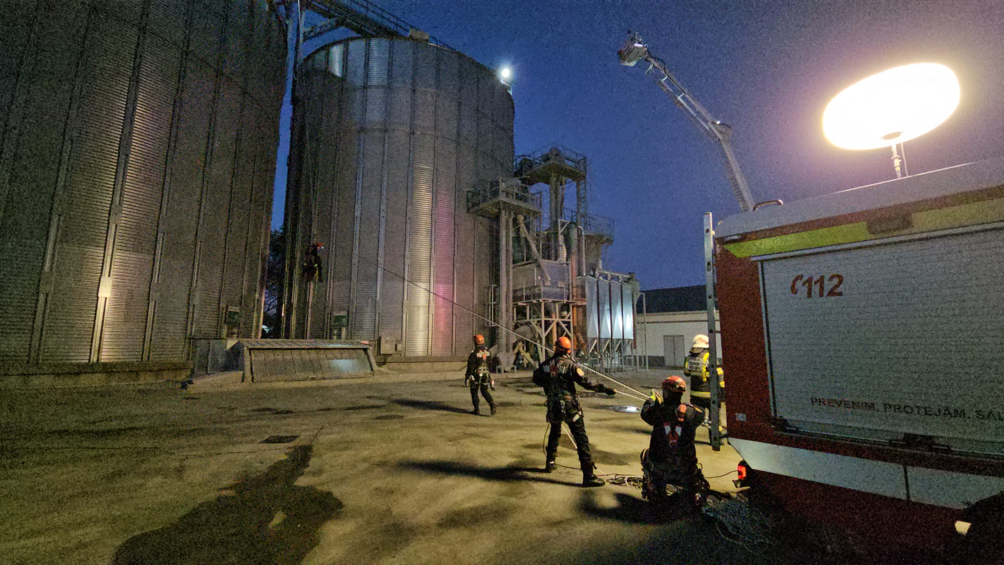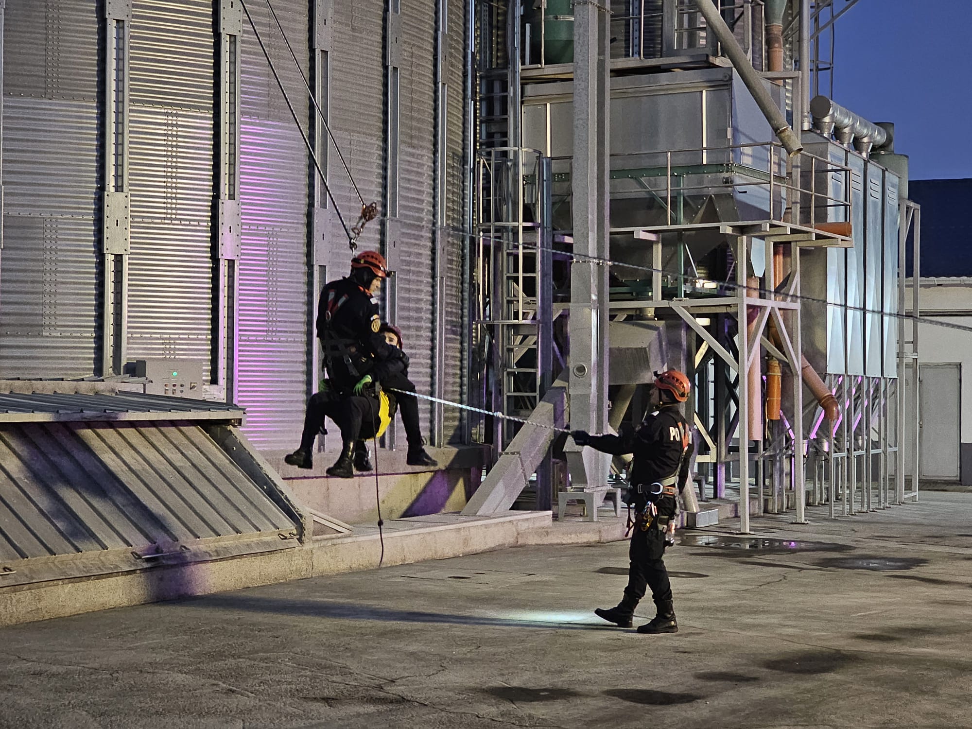 Un muncitor care efectua lucrări de mentenanță la depozitul de cereale, la o înălțime de aproximativ 25 de metri, nu a mai putut să coboare deoarece scara de acces nu mai prezenta siguranță.