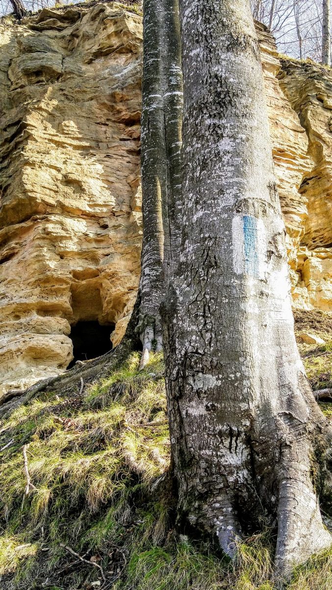 Situată la o altitudine de aproximativ 350 metri, peștera este săpată în coada lanțului de gresii nisipoase.