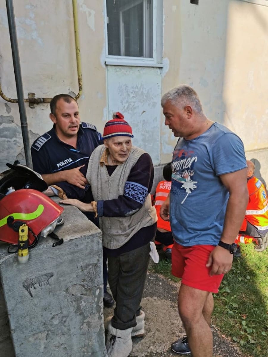 Bătrânul în vârstă de 86 de ani era căzut în holul apartamentului și refuza să iasă din încăperea cuprinsă de flăcări. Acesta a primit îngrijiri medicale la fața locului de la echipajul SAJ Botoșani, dar a refuzat transportul la spital.