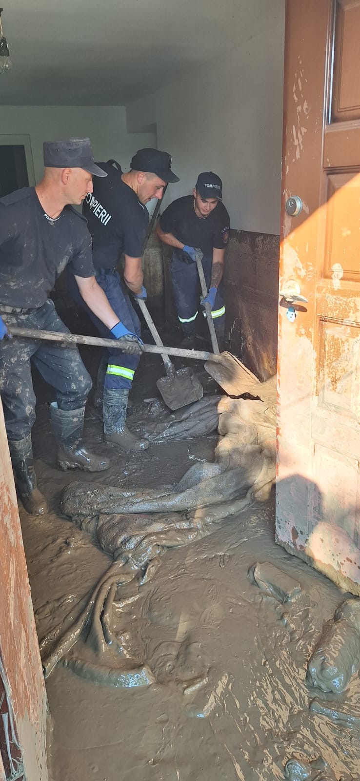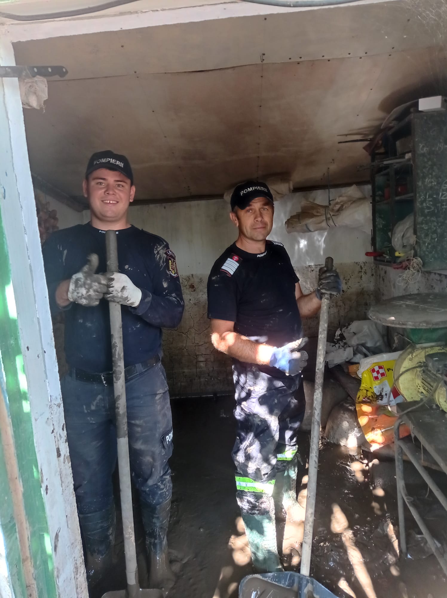 Aceștia intervin de dimineață până seara pentru a evacua apa și mâlul din locuințe și gospodării și fac tot posibilul pentru a salva și bunurile acestor oameni.