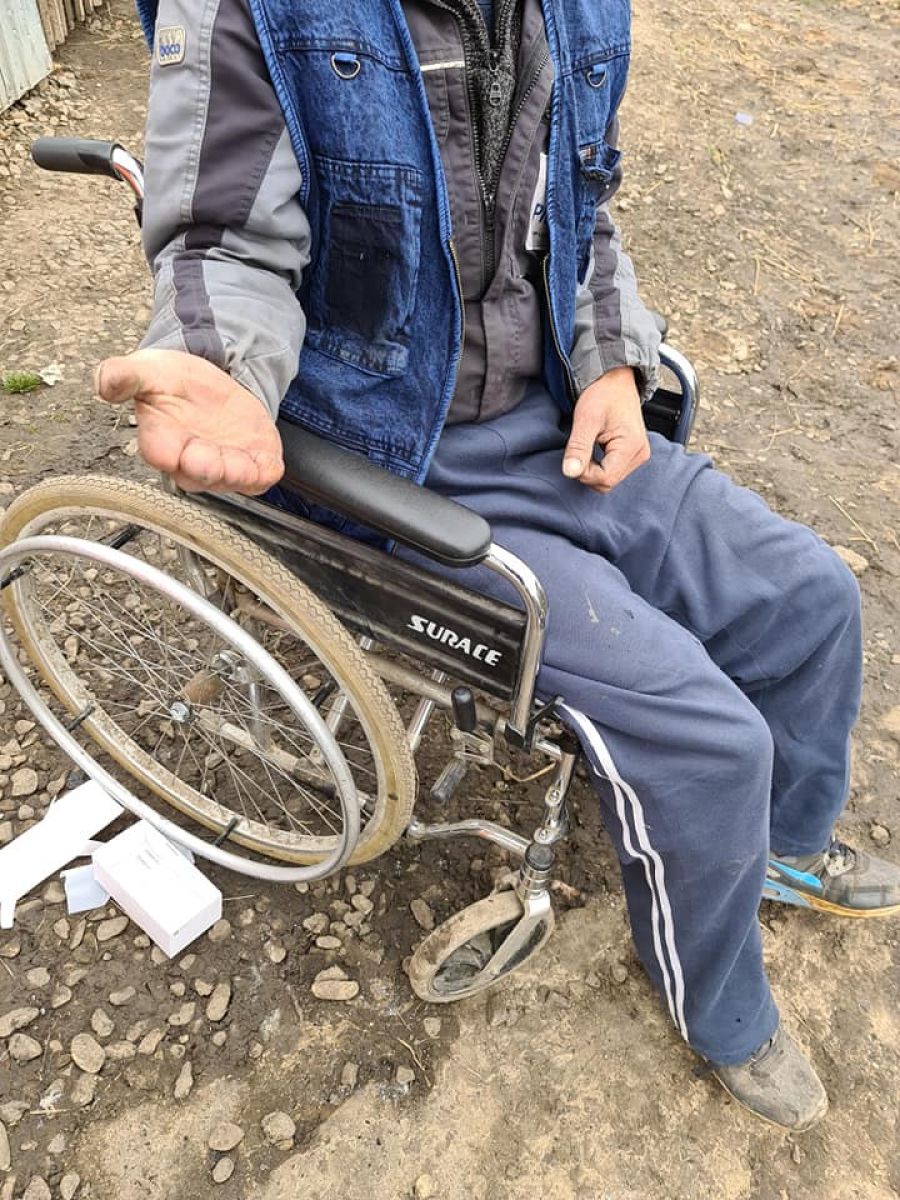 Voluntarii împreună cu Dan Câșlariu au fost chemați în comuna Vlădeni la Neculai Pintilie, un botoșănean care a rămas parțial fără ambele picioare dar și fără degetele de la o mână.