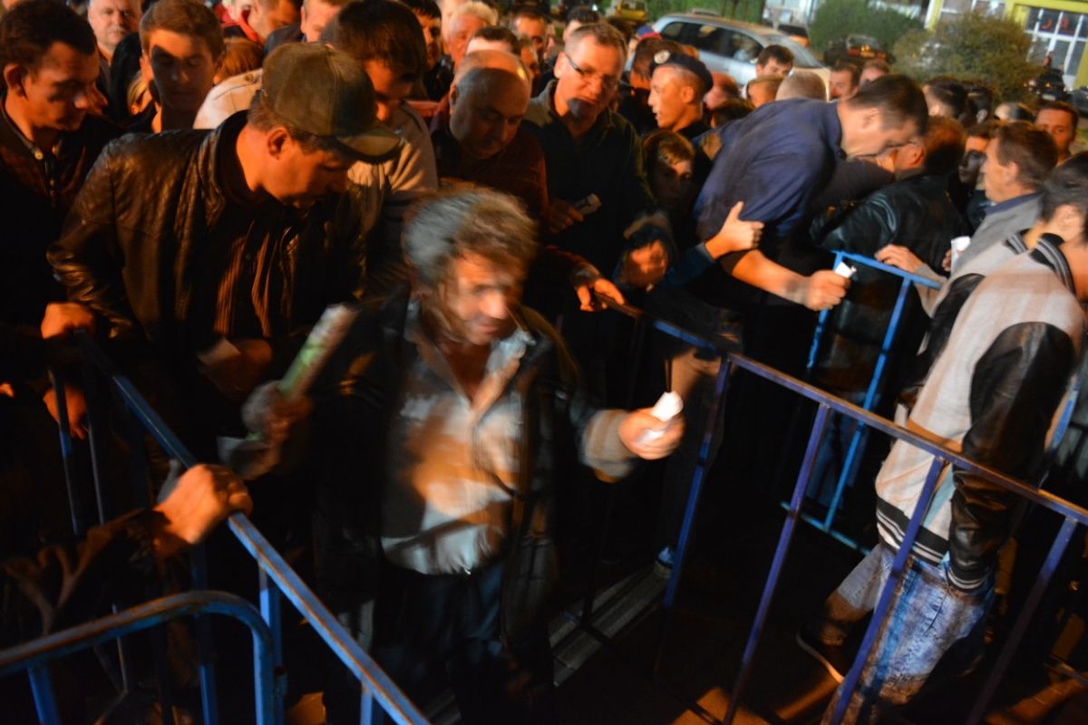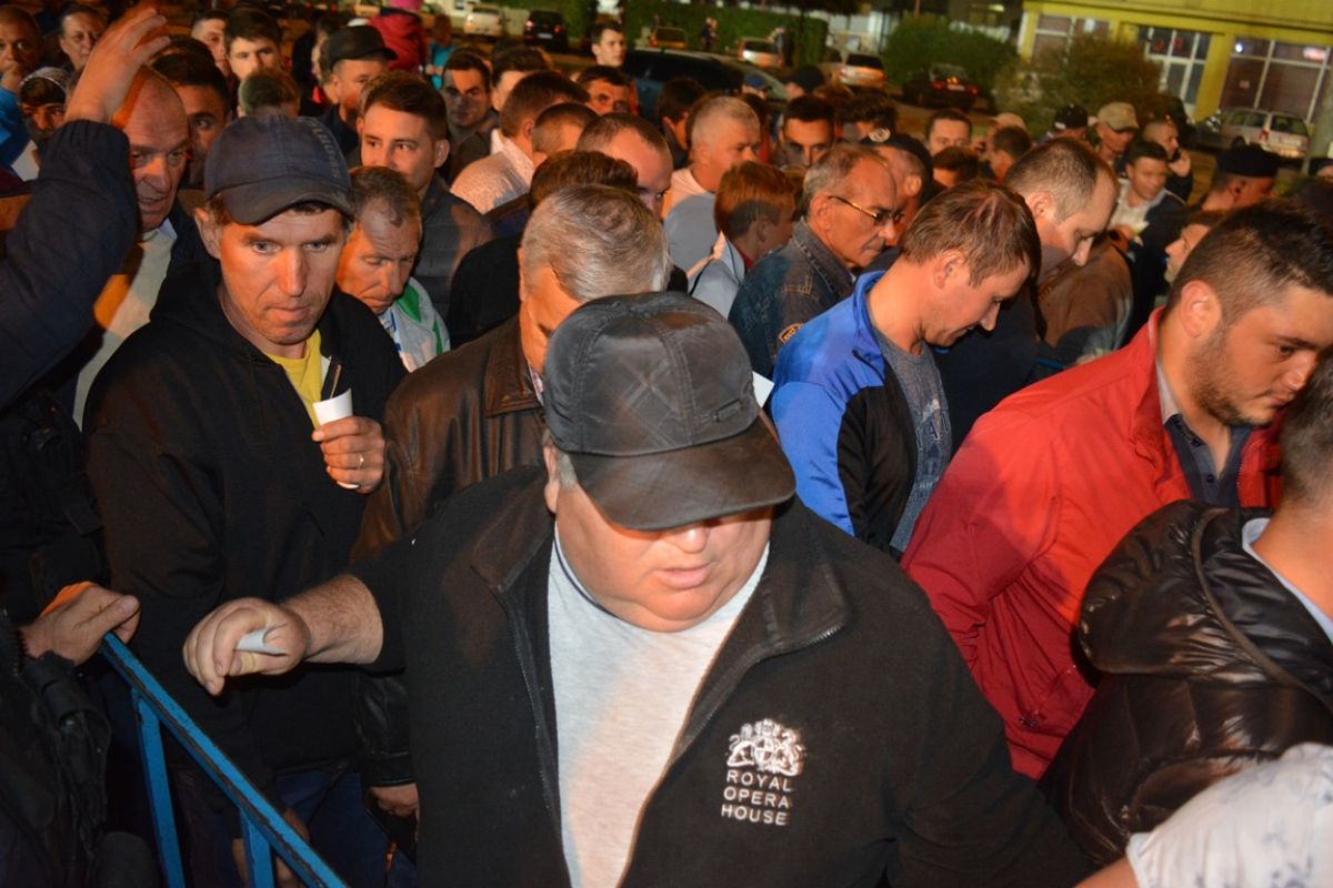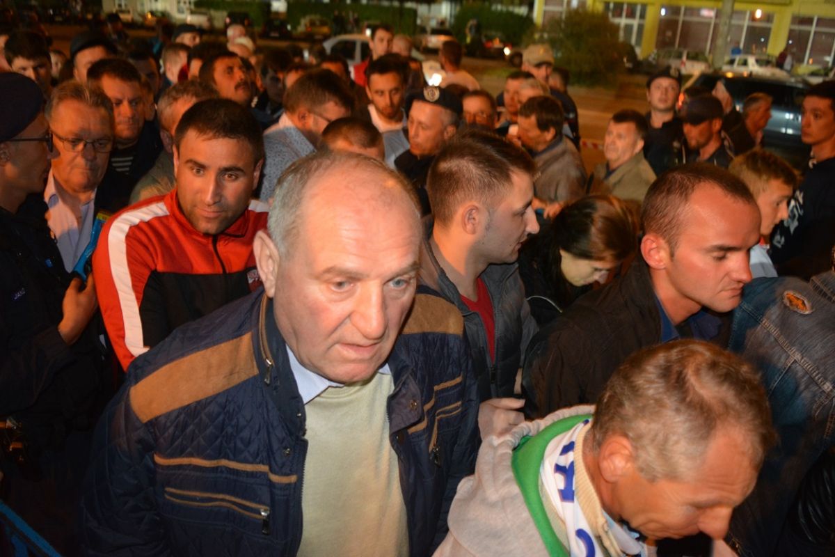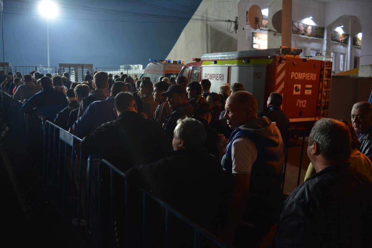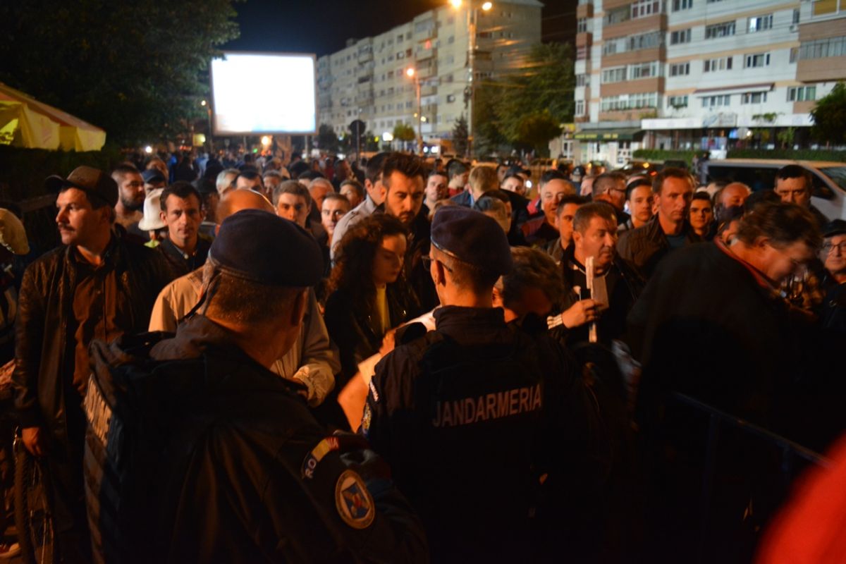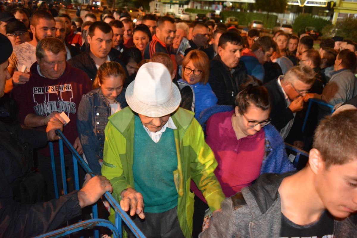 Aceasta și ca urmare a strategiei jandarmilor, care au decis din nou ca intrarea să se facă pe serii de 20 – 25 persoane deoarece la porțile cu turnicheți se adunaseră prea mulți oameni. Nervoși, unii spectatori au început să protesteze, nemulțumiți fiind că, deși au biletele, nu li se dă voie să intre pe stadion. Printre aceștia și Lucian Trufin, venit cu un copil la meci. Primarul de Vlăsinești le-a reproșat jandarmilor: ”când am fost la Barcelona nu m-a mai controlat nimeni”. Când oamenii în uniformă de la Bacău permiteau din nou intrarea, suporterii se împingeau, se loveau de garduri, se călcau la propriu pe picioare pentru ca nu cumva să piardă respectiva serie și să fie nevoiți să aștepte din nou.