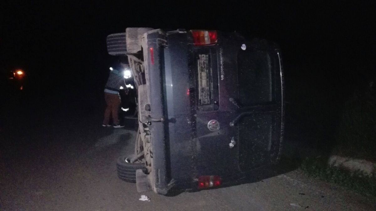 Microbuzul a continuat să ruleze circa 75 de metri după care s-a răsturnat,