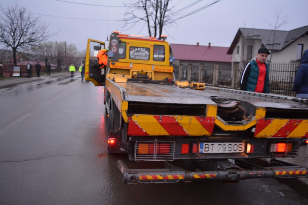 Circulația este întreruptă la ieșirea din Răchiți spre Săveni, la fața locului sosind de câteva minute un echipaj de la SOS Savencu pentru ridicare automobilului.