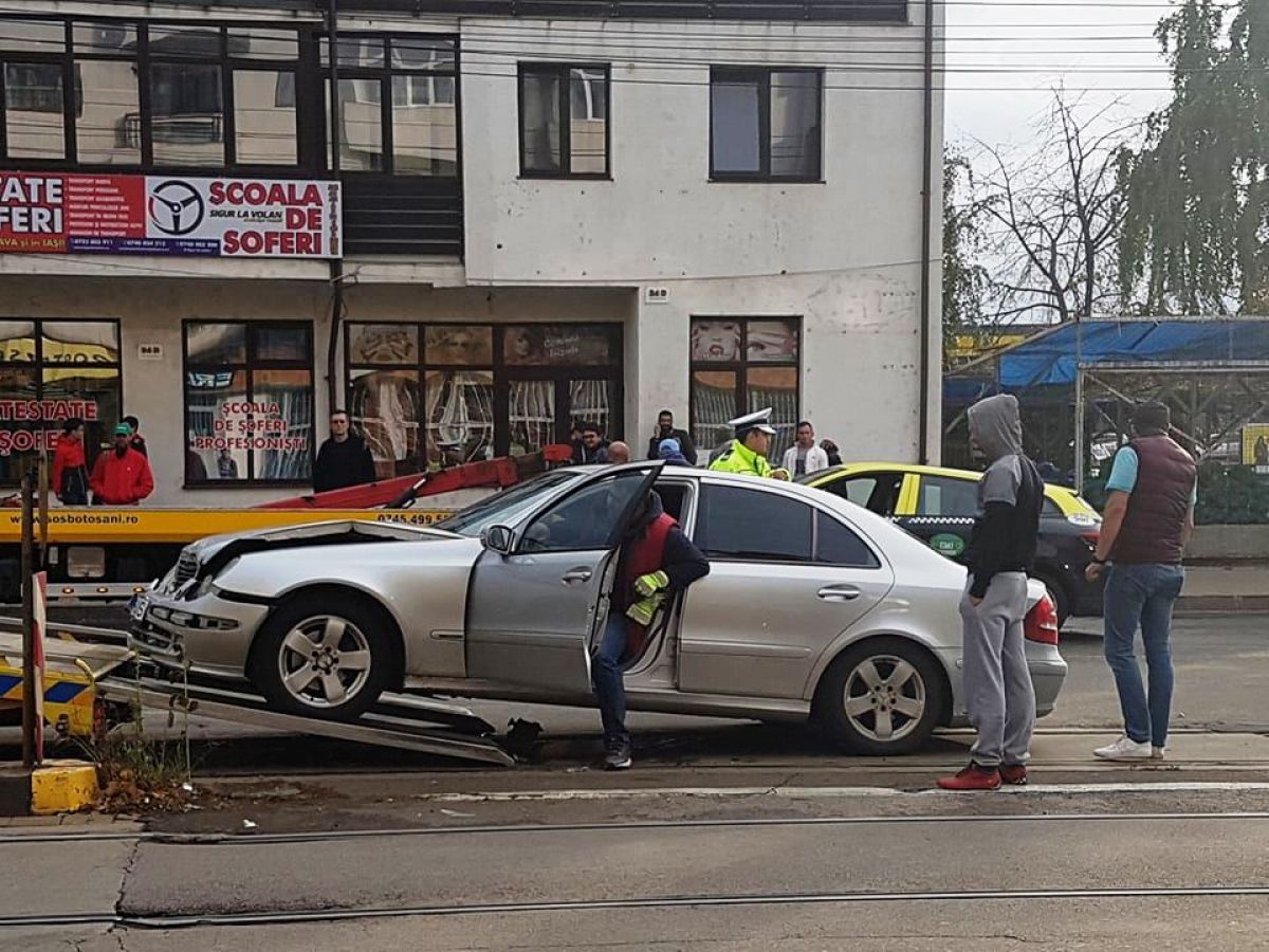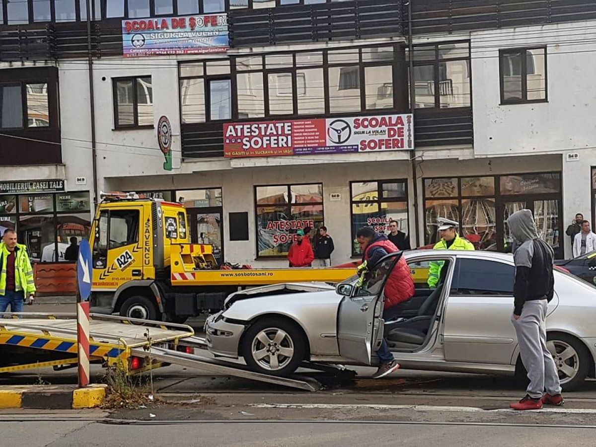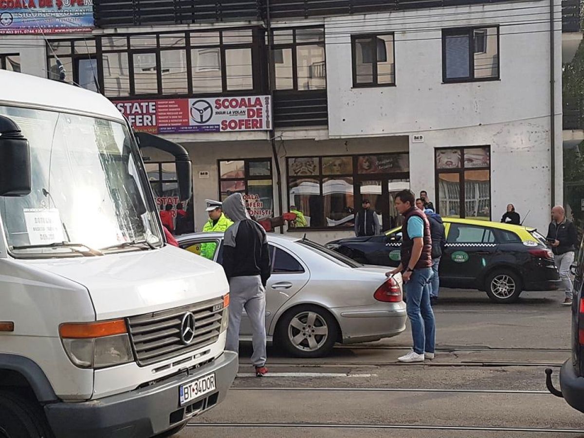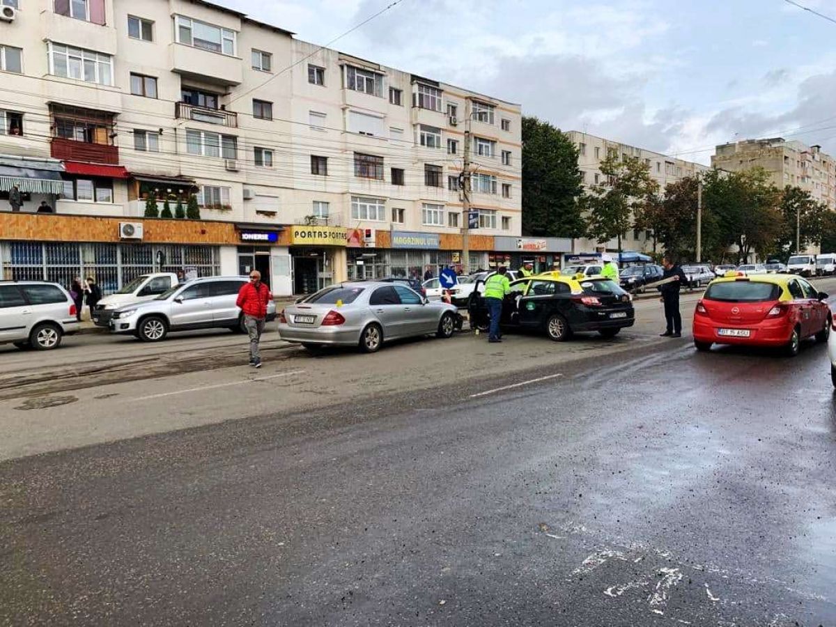 Un conducător auto ar fi oprit pentru a-i oferi timpul necesar ca să execute manevra, numai că de pe a doua bandă a venit un Mercedes care a izbit în plin taxiul.