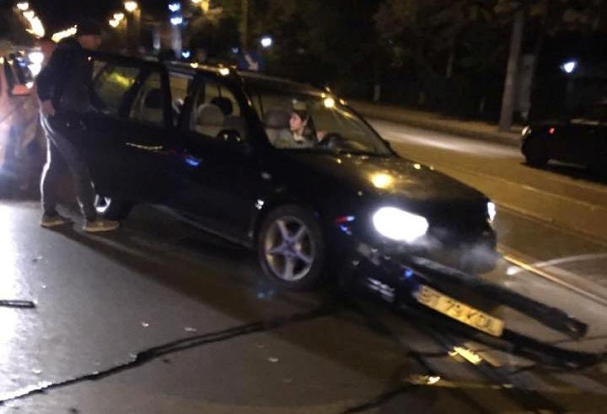 Impactul a fost atât de puternic încât roata din stânga față a mașinii șoferiței a sărit, lucru care s-a întâmplat și cu bara din față, astfel încât automobilul a rămas blocat pe linia de tramvai.