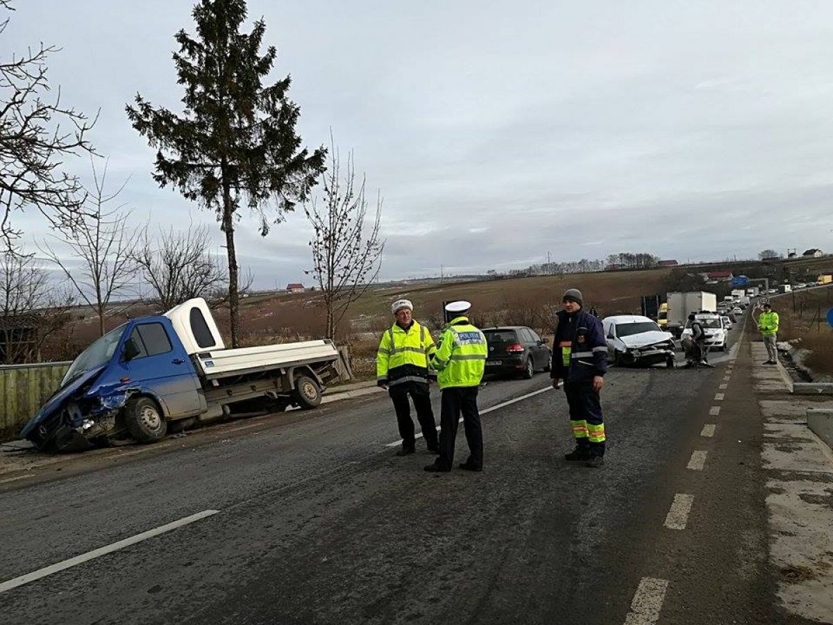 De altfel, conducătorul auto a şi fost transportat la spital. Circulaţia a fost întreruptă timp de câteva minute şi s-a format o coadă de aproximativ un kilometru.