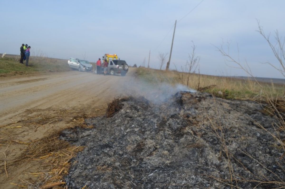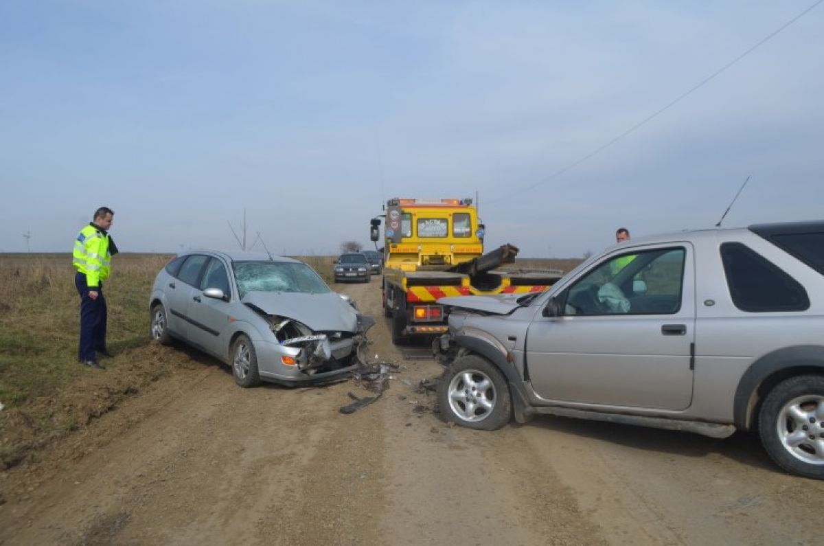 Fumul purtat de vânt a îngreunat vizibilitatea pe drumul de pământ. Din cauza condițiilor de mers, ambele autoturisme circulau pe axul drumului. Impactul a fost unul extrem de puternic, parbrizele de la mașini fiind sparte de capetele șoferilor.
