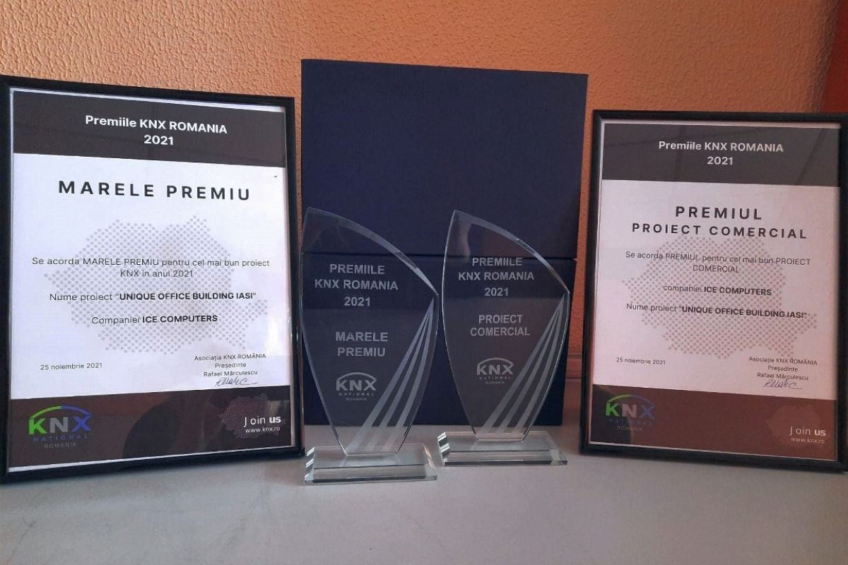 Integrarea sistemului BMS protocol KNX, în colaborare cu ICE IT Solutions, a fost premiată cu “Marele premiu KNX România” și “Cel mai bun proiect comercial România” în cadrul Galei KNX România 2021 - asociație profesională ce promovează și susține aplicațiile de automatizări pentru clădiri ce utilizează standardul deschis KNX.