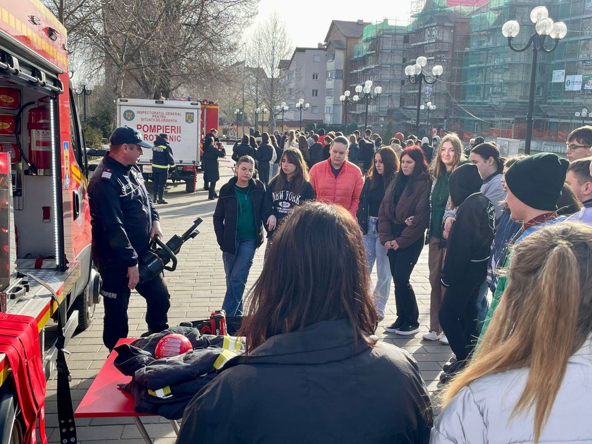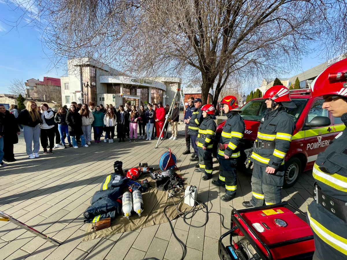 Încă de la primele ore ale dimineții, Pietonalul Ghica din municipiul Dorohoi s-a umplut de elevi și cadre didactice de la Colegiul Național „Grigore Ghica”, Liceul „Regina Maria” și Școlile Gimnaziale nr. 1, 2, 5, 7 și 8, curioși să vadă îndeaproape autospeciala hidroperforare, pirotehnică, de descarcerare, șenilata, kit-ul de salvare din fântâni și sistemul nocturn de iluminat.
