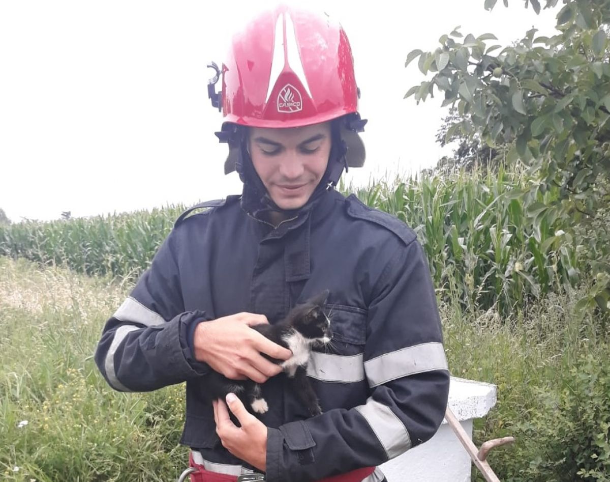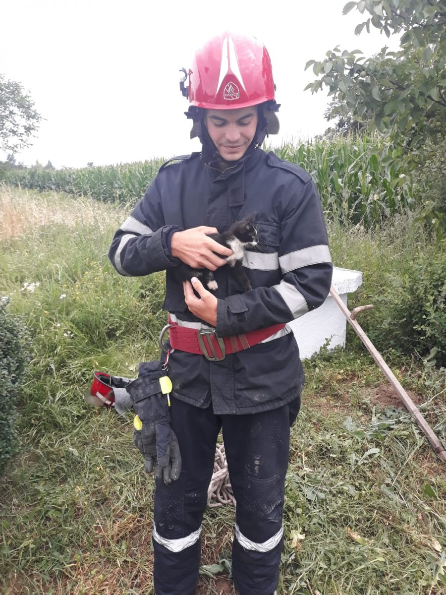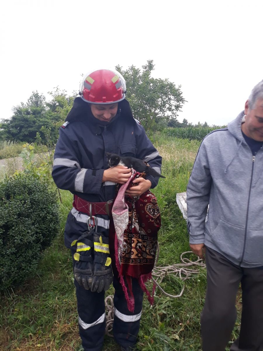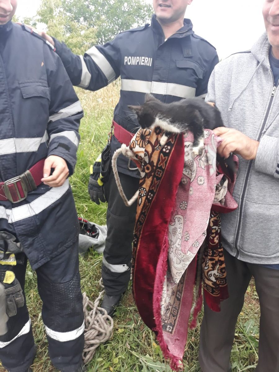O misiune delicată, care s-a finalizat cu succes, după ce o pisicuță a căzut într-o fântână adâncă de aproximativ 13 metri.