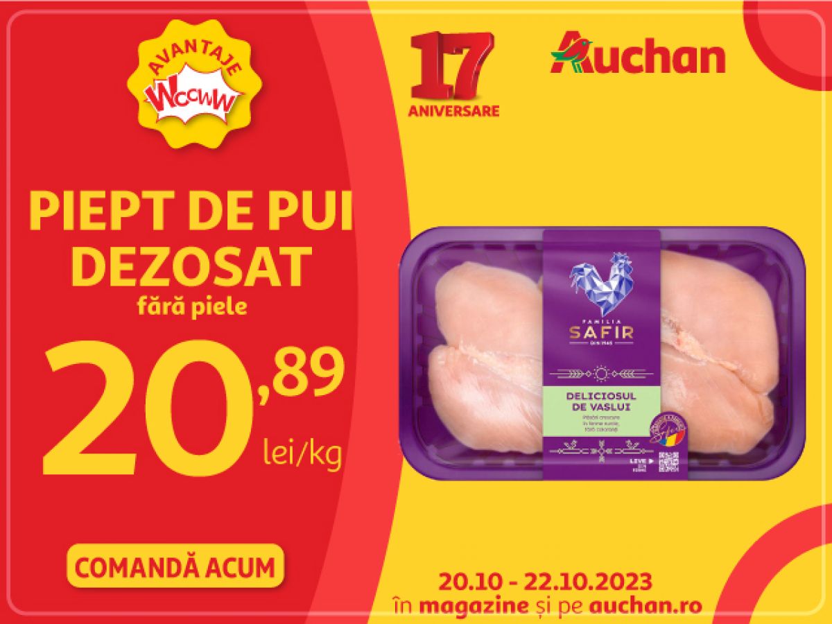 În perioada 20 - 22.10.2023, ai super preț la piept de pui dezosat fără piele: 20,89 lei/kg.