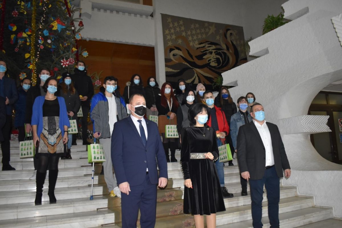 Studenții care nu au crescut în familiile naturale ci în grija statului, au fost invitați astăzi la sediul Consiliului Județean unde au fost felicitați de conducerea instituției, formată din Doina Federovici, președintele CJ și cei doi vicepreședinți Bogdan Dăscălescu și Dorin Birta.