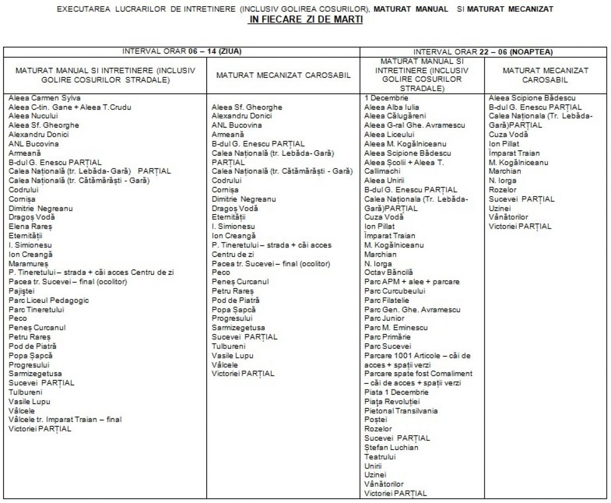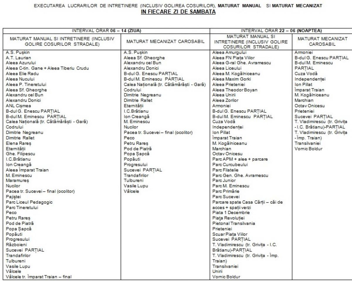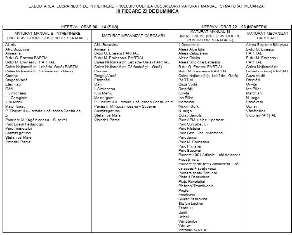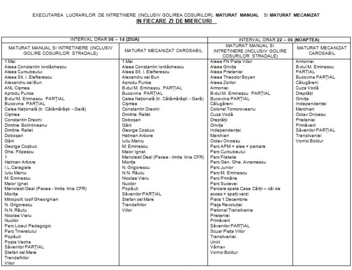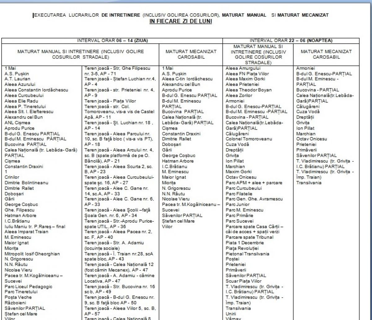 Este vorba despre lucrări de întreținere, inclusiv golirea coșurilor, dar și măturat manual și măturat mecanizat.