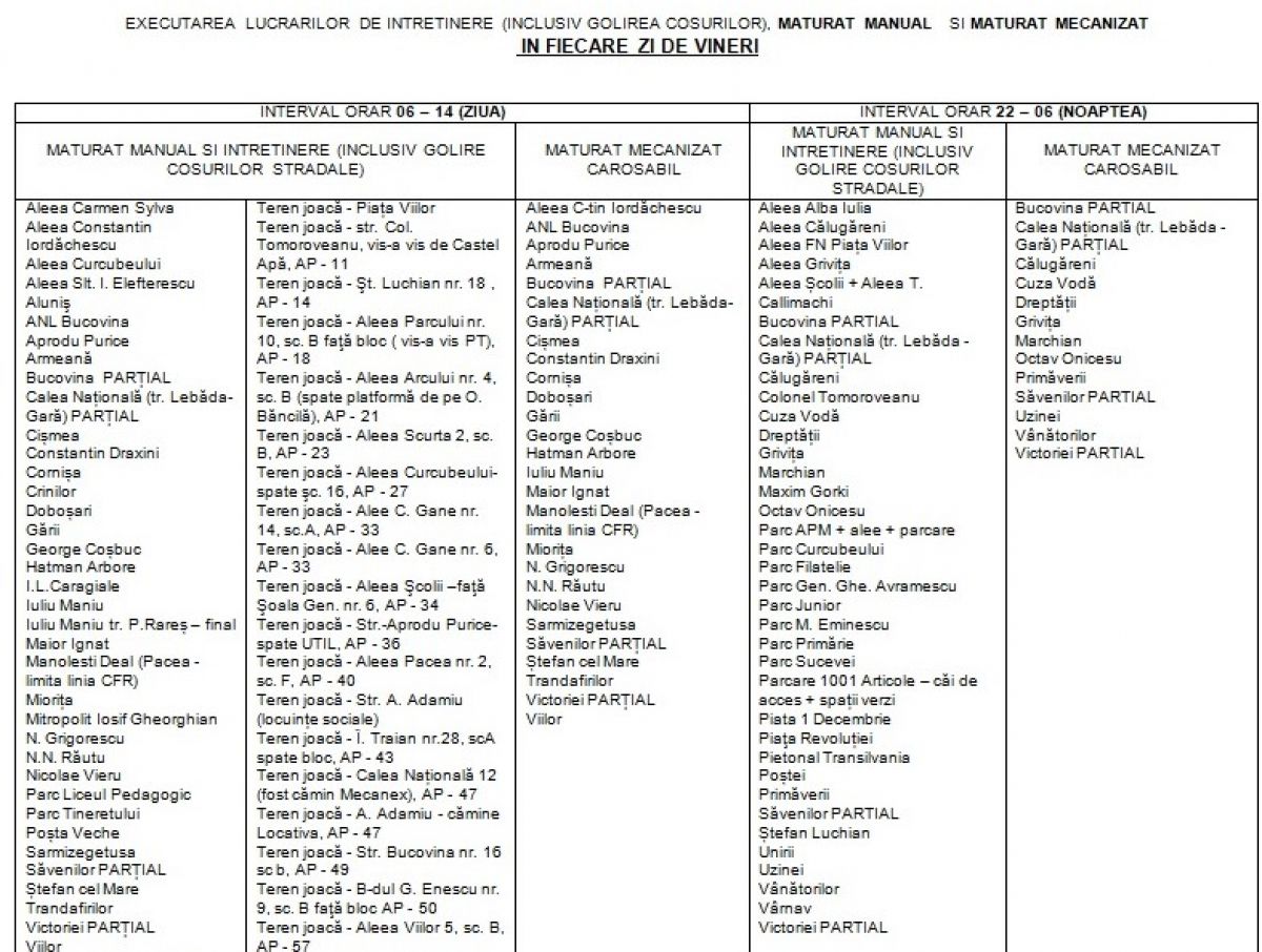 Urban Serv anunță noul program de salubrizare, pe zile, a căilor publice din municipiul Botoșani.