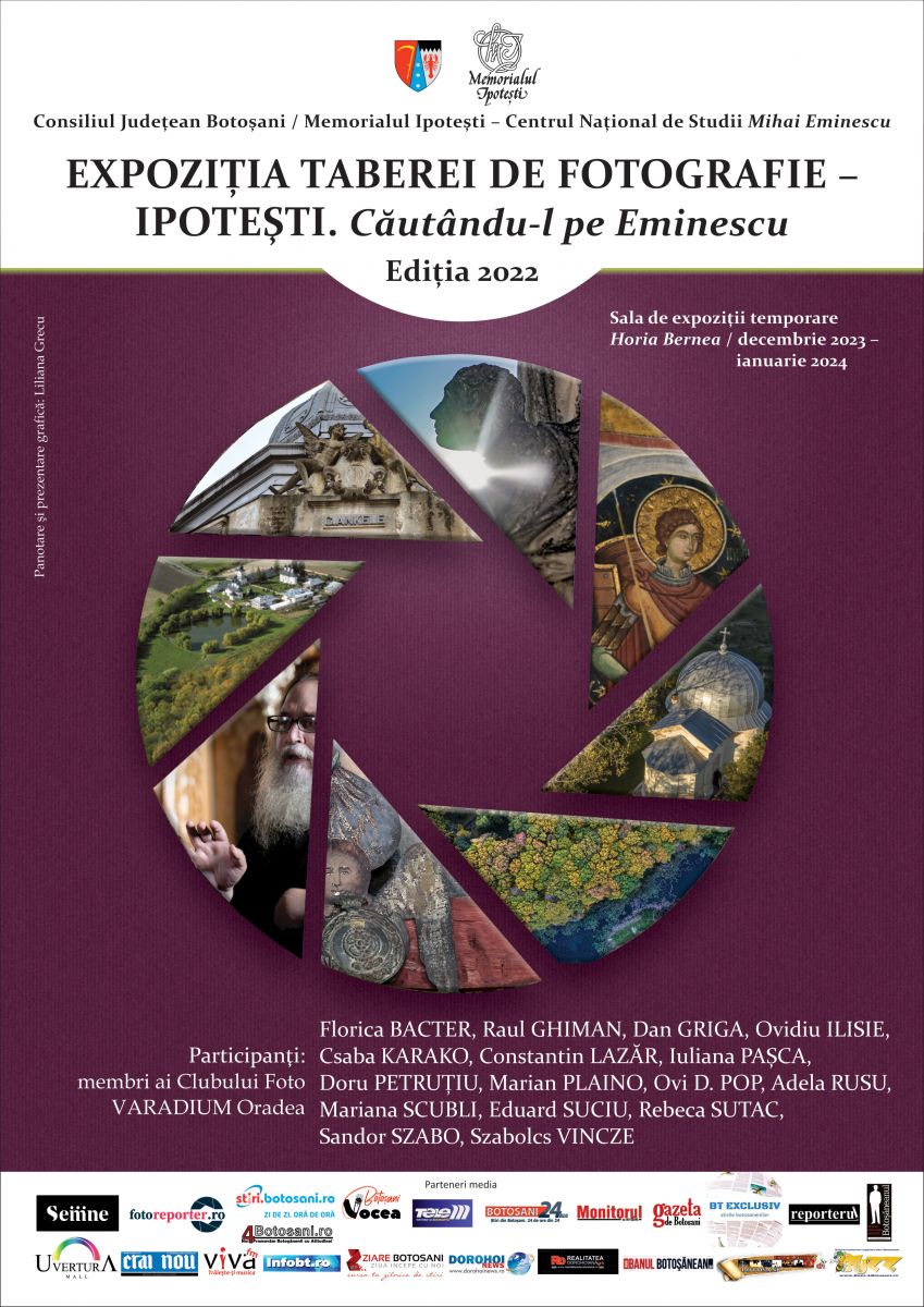 În perioada decembrie 2023 – ianuarie 2024 Memorialul Ipotești vă invită să vizualizați o selecție din materialul fotografic realizat de participanții la Tabăra de fotografie IPOTEȘTI. Căutându-l pe Eminescu, desfășurată în perioada 20-23 octombrie 2022. Fotografiile au fost realizate în urma tururilor și sesiunilor foto propuse în această ediție la: Ipotești, Capela Calimachi din Stâncești, Lacul cu nuferi din pădurea Baisa, Mănăstirea Agafton, bisericile de lemn din Cervicești, Hilișeu-Horia, Bălușeni, Bănești, Brăiești, Mănăstirea Vorona, Sihăstria Voronei, biserica din Bălinești, Mănăstirea Coșula și Botoșani.