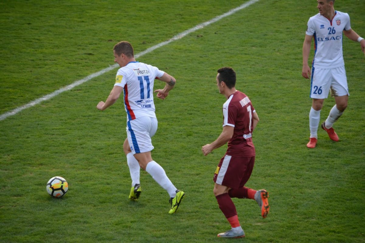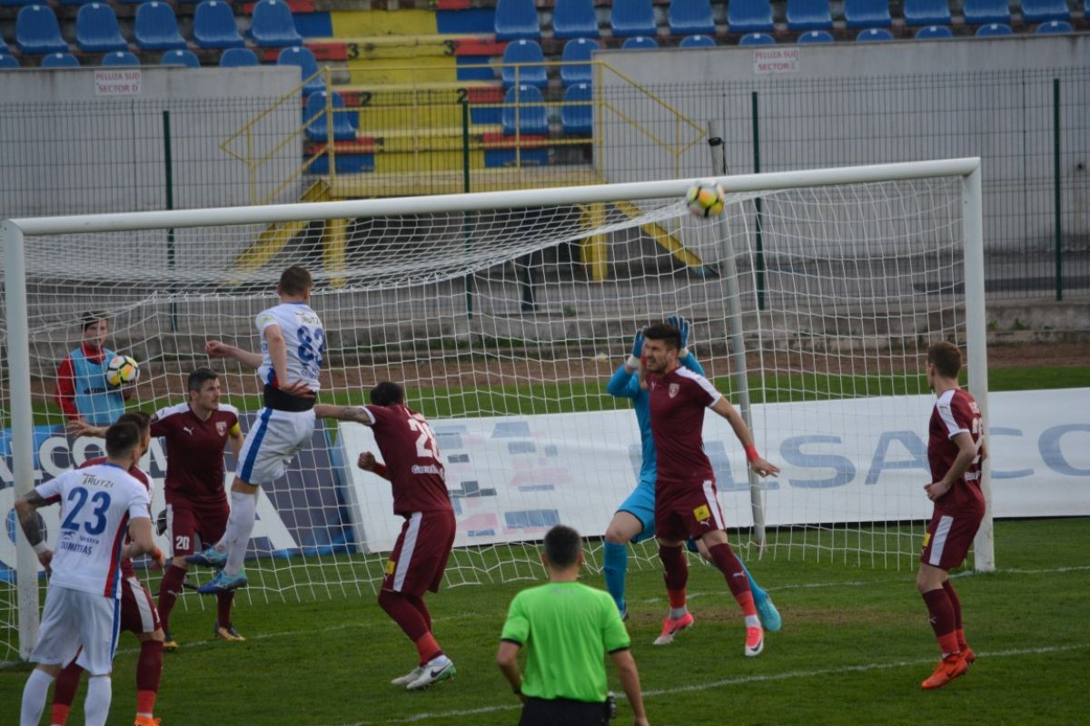 În minutul 40 Roman a trimis o centrare șutată prin fața porții, însă Golofca a trecut milimetric pe lângă minge.