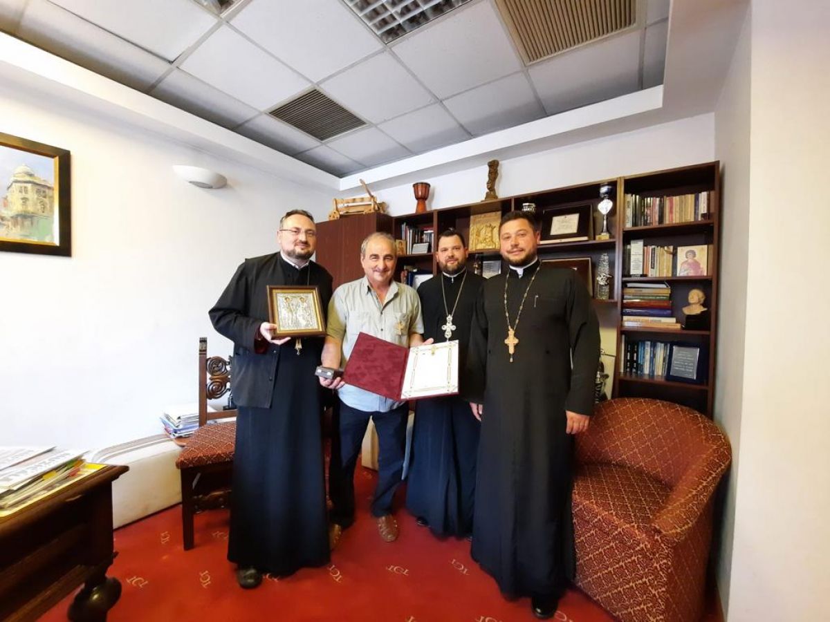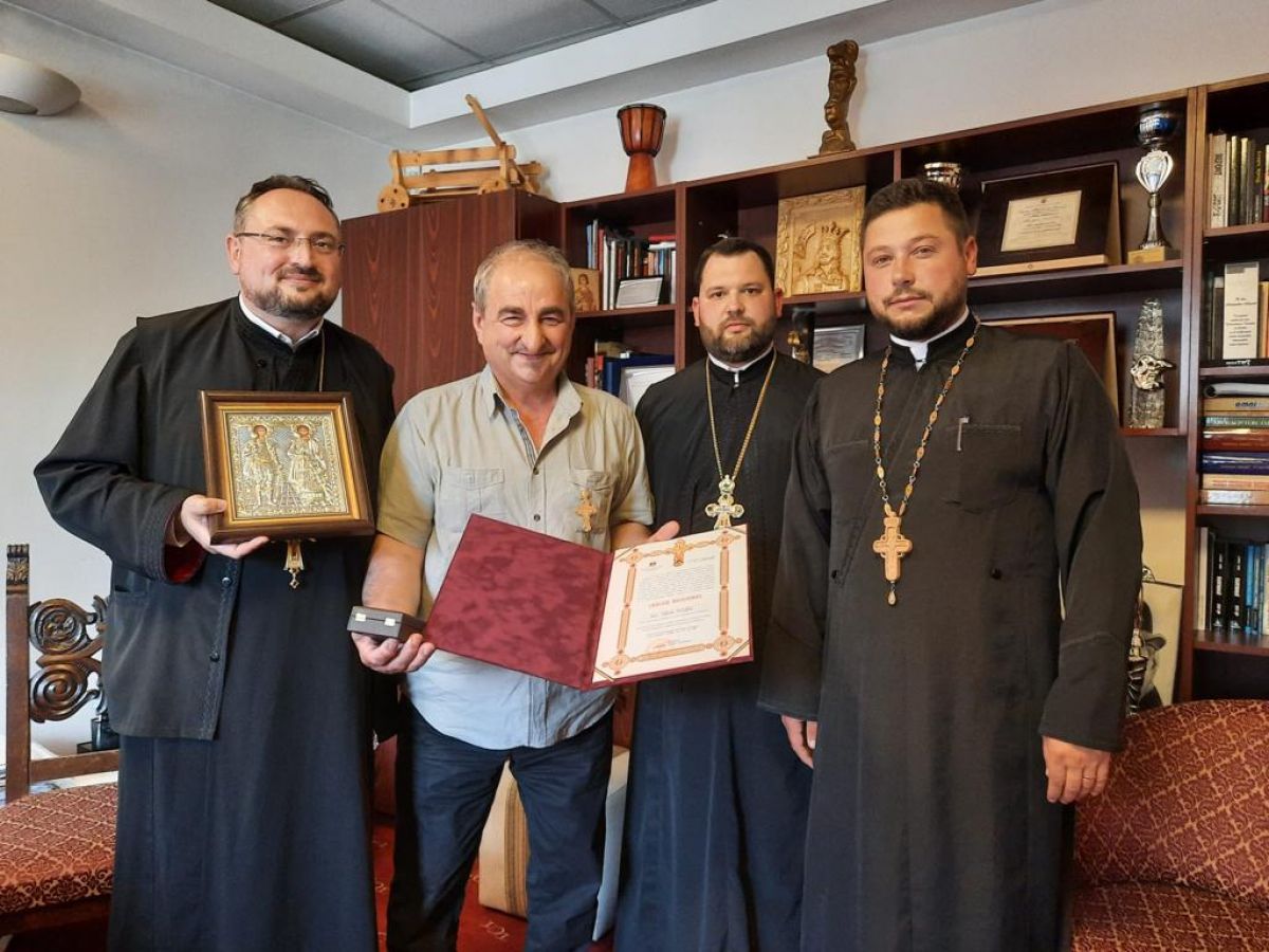 Delegația Arhiepiscopiei s-a deplasat și la Teatrul de Revistă „Constantin Tănase” – București, pentru conferirea ordinului Crucea Bucovinei actorului Vasile Muraru, directorul instituției.