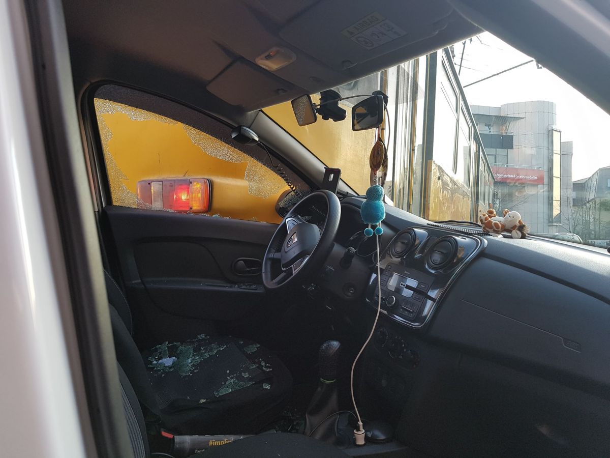 Din fericire, taximetristul care se afla în mașină nu a pățit nimic, însă a petrecut o cumpănă având în vedere că a fost lovit exact în partea șoferului .
