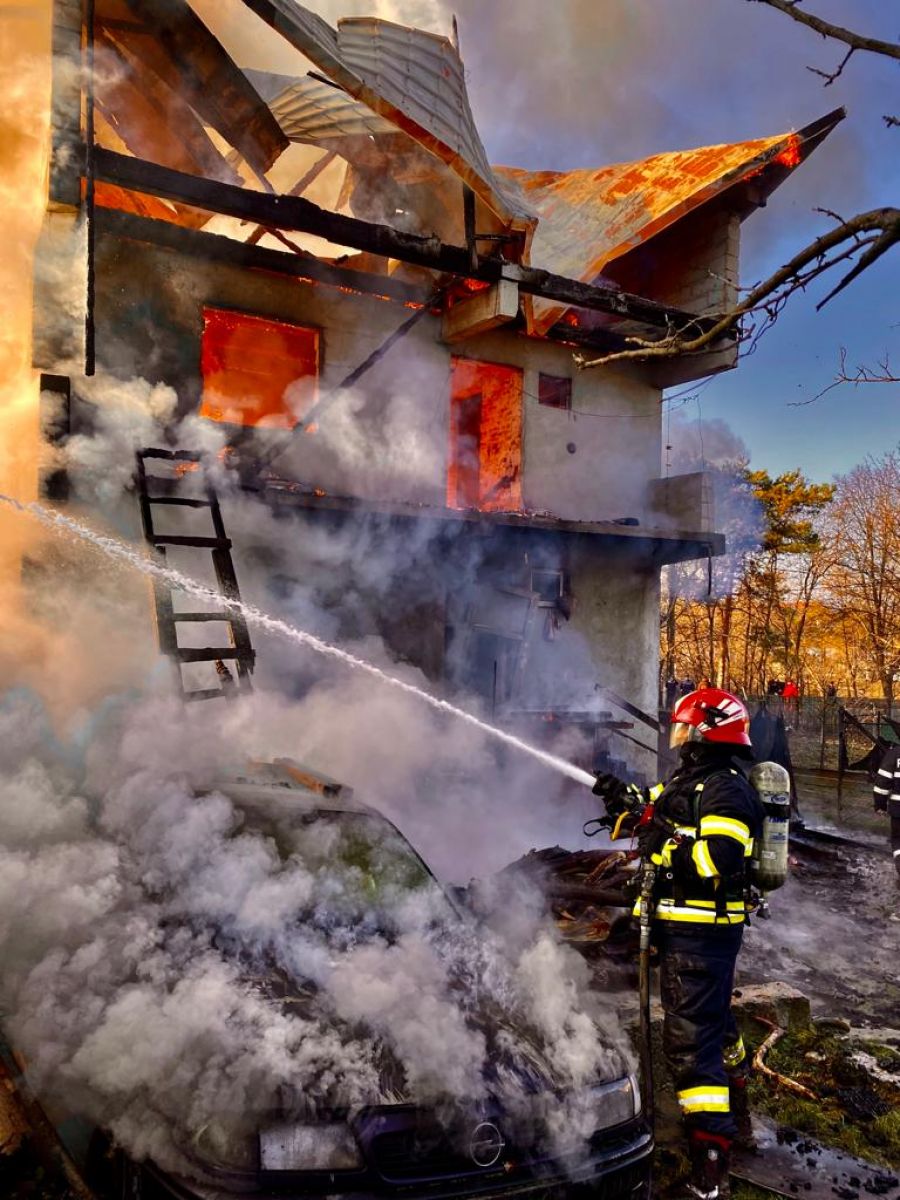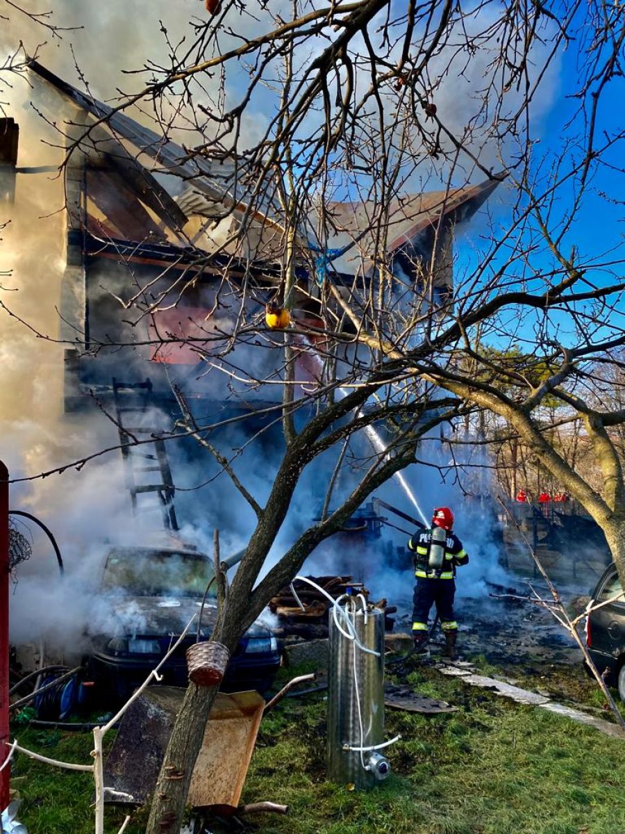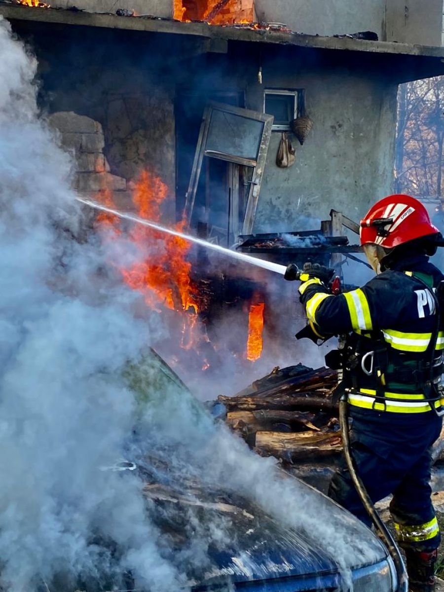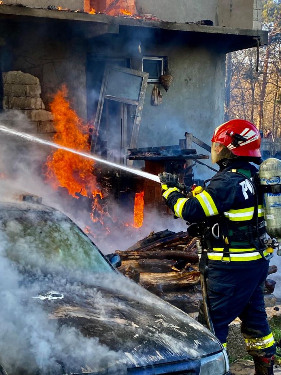 Aceștia au constat că ardea întreaga locuinţă, dar și două autoturisme, existând pericolul de propagare a flăcărilor la o altă casă și o mașină.
