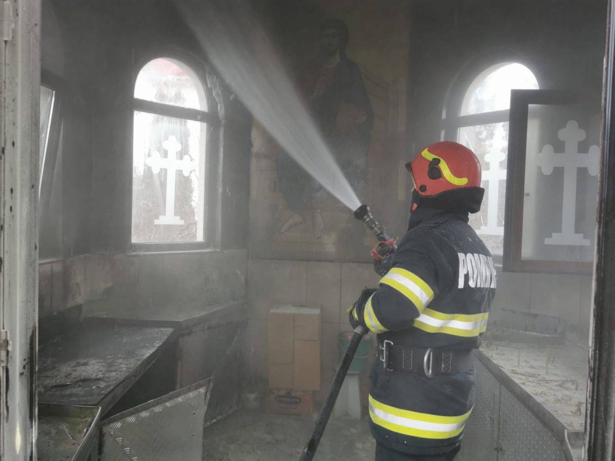 Când s-a produs incendiul, preotul și credincioșii erau la slujbă, în afara lăcașului de cult.