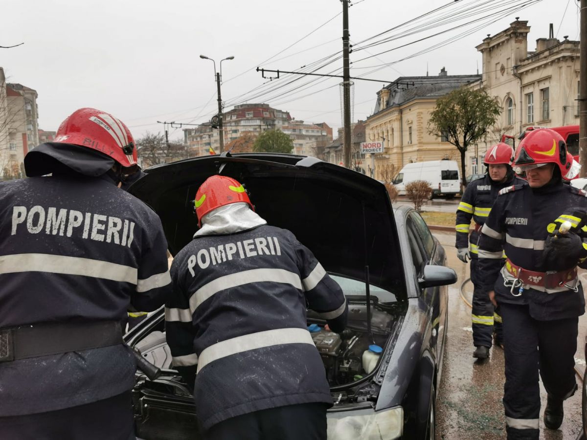 Câțiva trecători au observat că iese fum de sub capotă și au sunat după ajutor.
