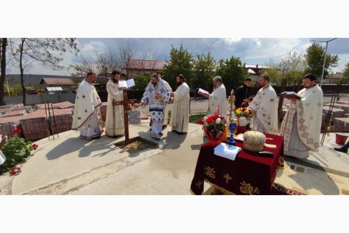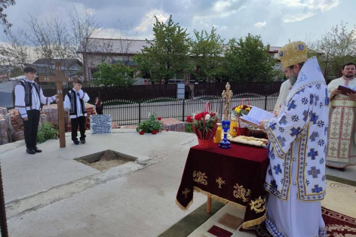 După Sfânta Liturghie, ierarhul a săvârșit slujba de sfințire a temeliei pentru noua biserică.