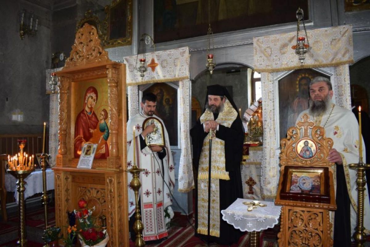 Părintele paroh, cu multă emoție, a mulțumit Preasfințitului Părinte Episcop-vicar pentru această mare bucurie de a se afla în mijlocul credincioșilor și i-a oferit în dar icoana Sfântului Dimitrie Izvorâtorul de Mir – ocrotitorul acestui sfânt locaș.