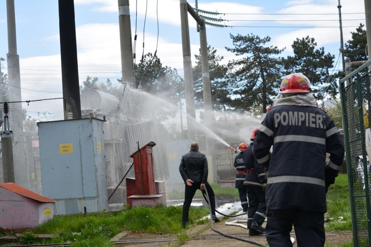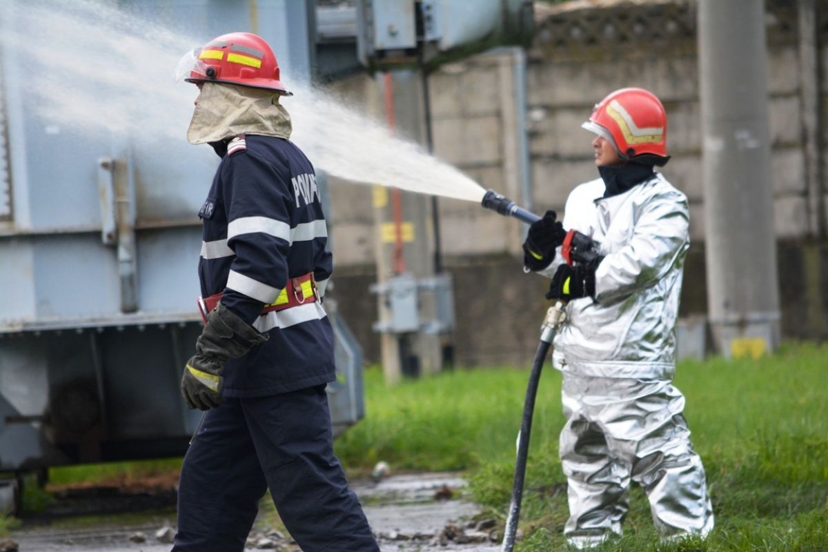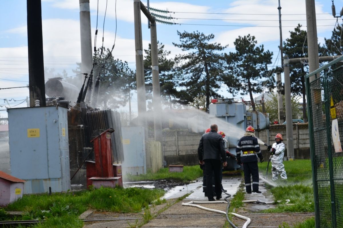 Pe strada Mobilei se intervine și la aceasta ora cu patru echipaje pentru răcirea punctului de transformare a energiei electrice în care se afla ulei încins.