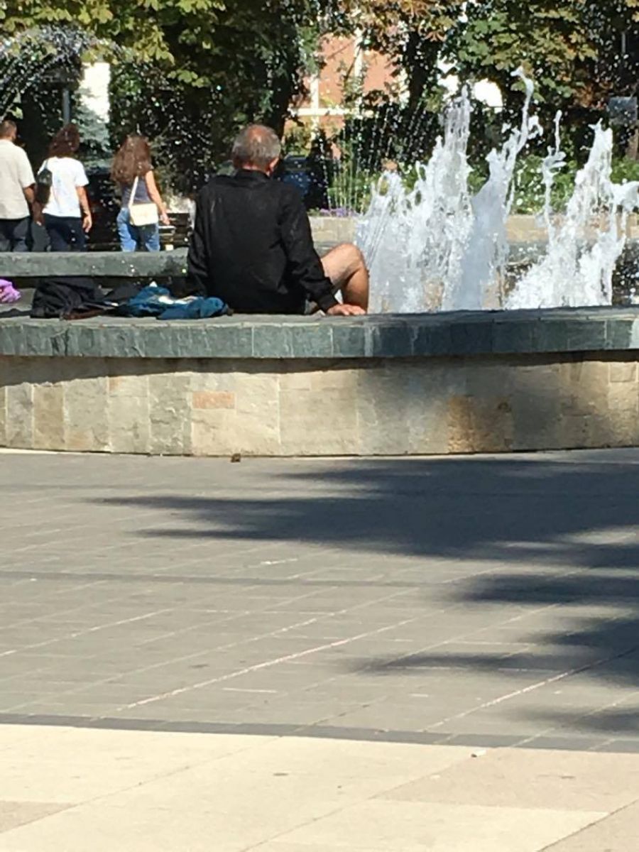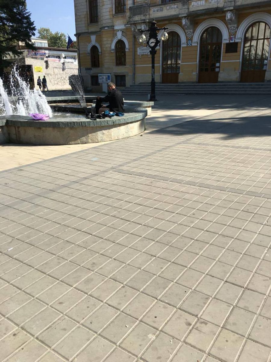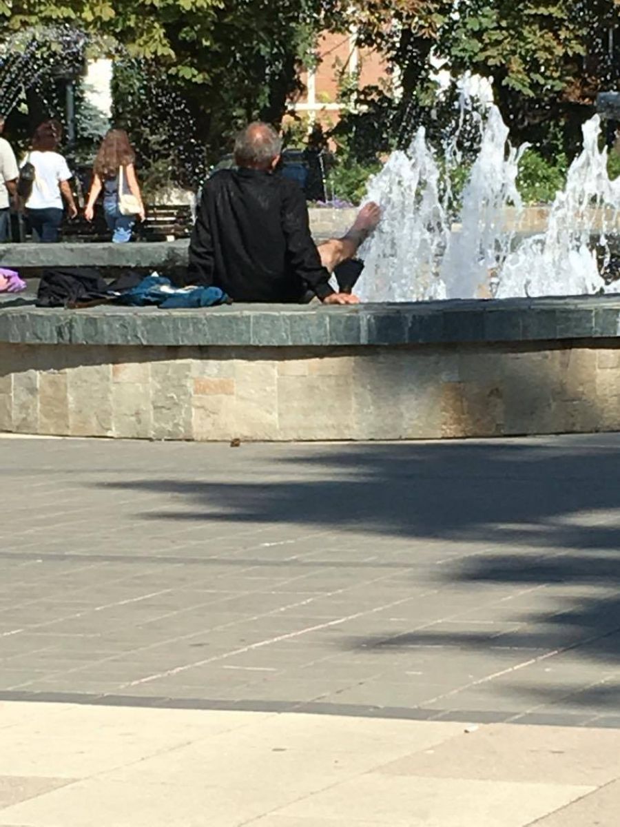 După ce a terminat cu articolele vestimentare a trecut la igiena proprie. Bineînțeles că după a urmat un moment prelungit de relaxare, botoșăneanul întinzând picioarele spre jetul fântânii pentru a se răcori probabil.