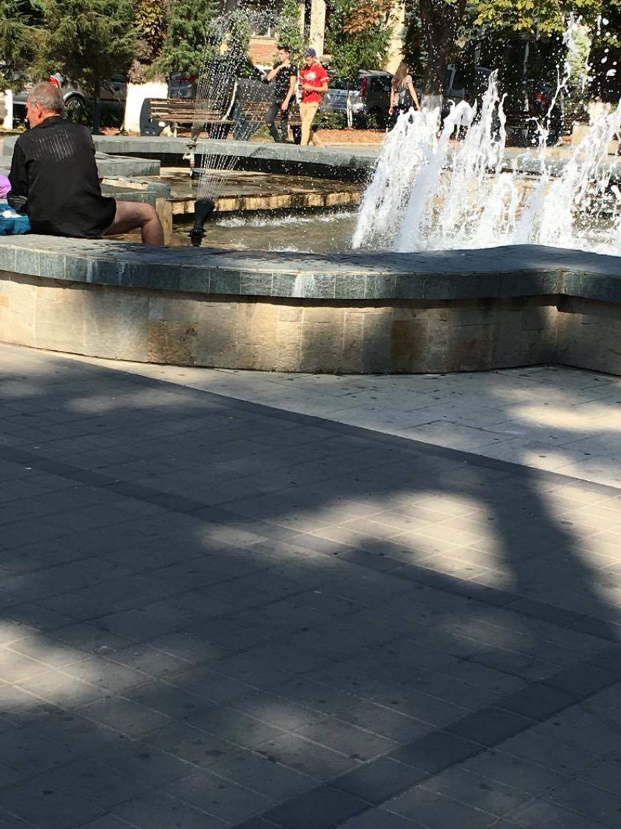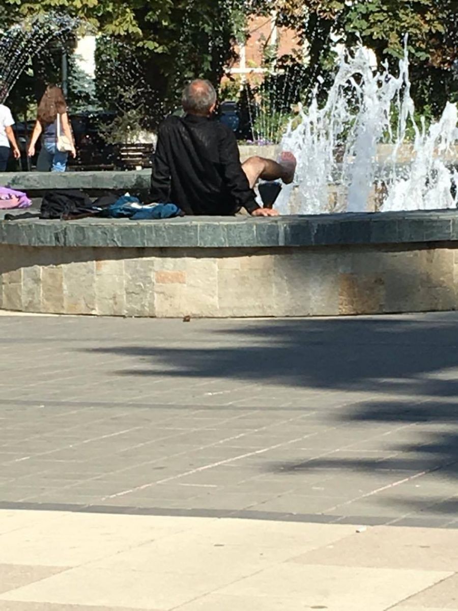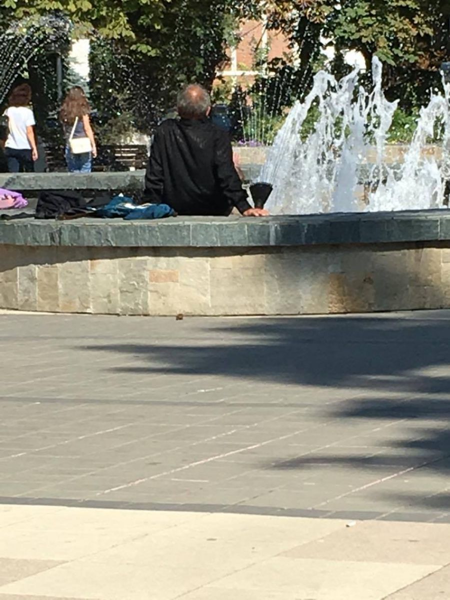 După ce a terminat cu articolele vestimentare a trecut la igiena proprie. Bineînțeles că după a urmat un moment prelungit de relaxare, botoșăneanul întinzând picioarele spre jetul fântânii pentru a se răcori probabil.