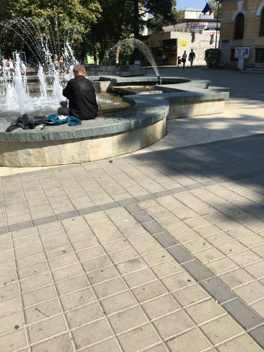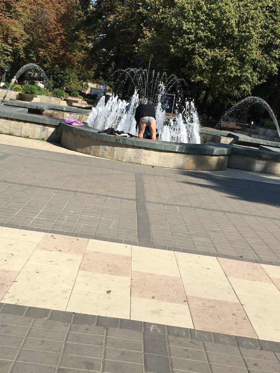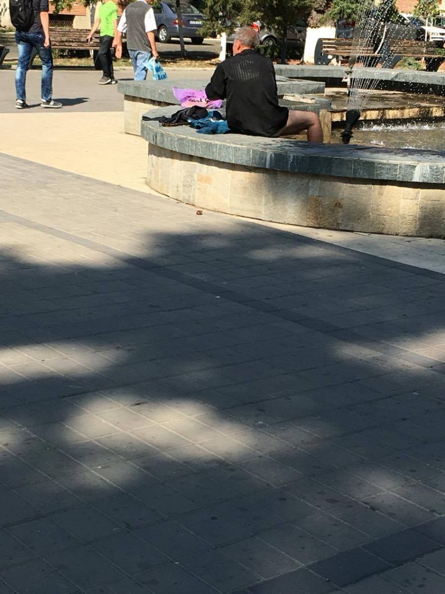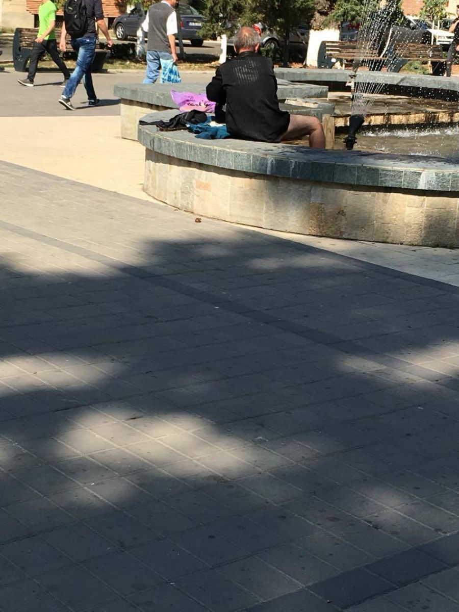 Și totul s-a petrecut ziua în amiaza mare, vineri, în jur de ora 14.00 pe cea mai circulată alee pietonală din oraș. Bărbatul care pare să aibă undeva la 50 de ani s-a dezbrăcat în lenjerie intimă și a început să-și spele hainele pe Pietonalul Unirii.