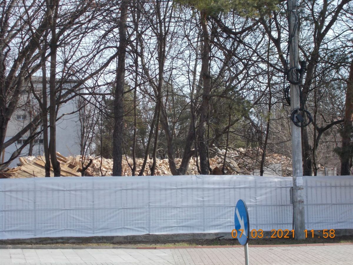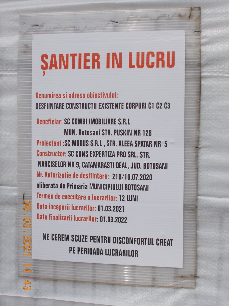 Potrivit firmei care s-a ocupat de demolare, lucrarea s-a făcut în scopul ”desființării construcției existente” (foto jos).