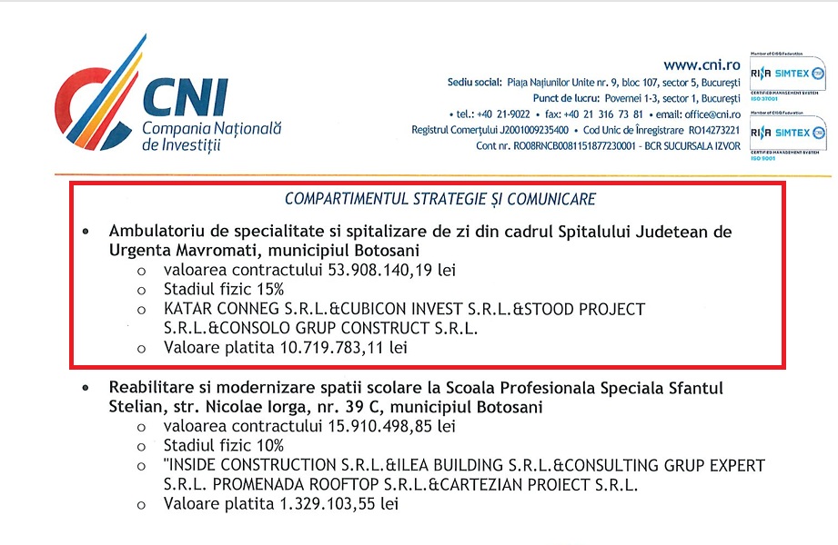Antreprenor: Katar Conneg S.R.L.&Cubicon Invest S.R.L.&Stood Project   S.R.L. &Consolo Grup Construct S.R.L