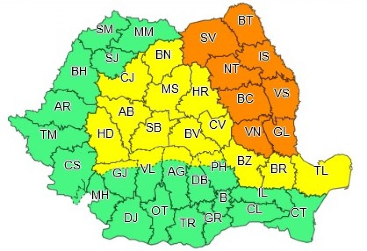 Județul Botoșani se află astăzi sub Cod Portocaliu, avertizarea meteo fiind în vigoare de la ora 13.00 până la ora 22.00.