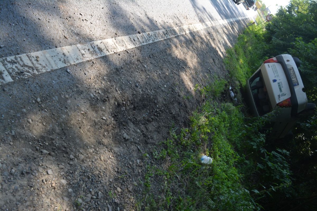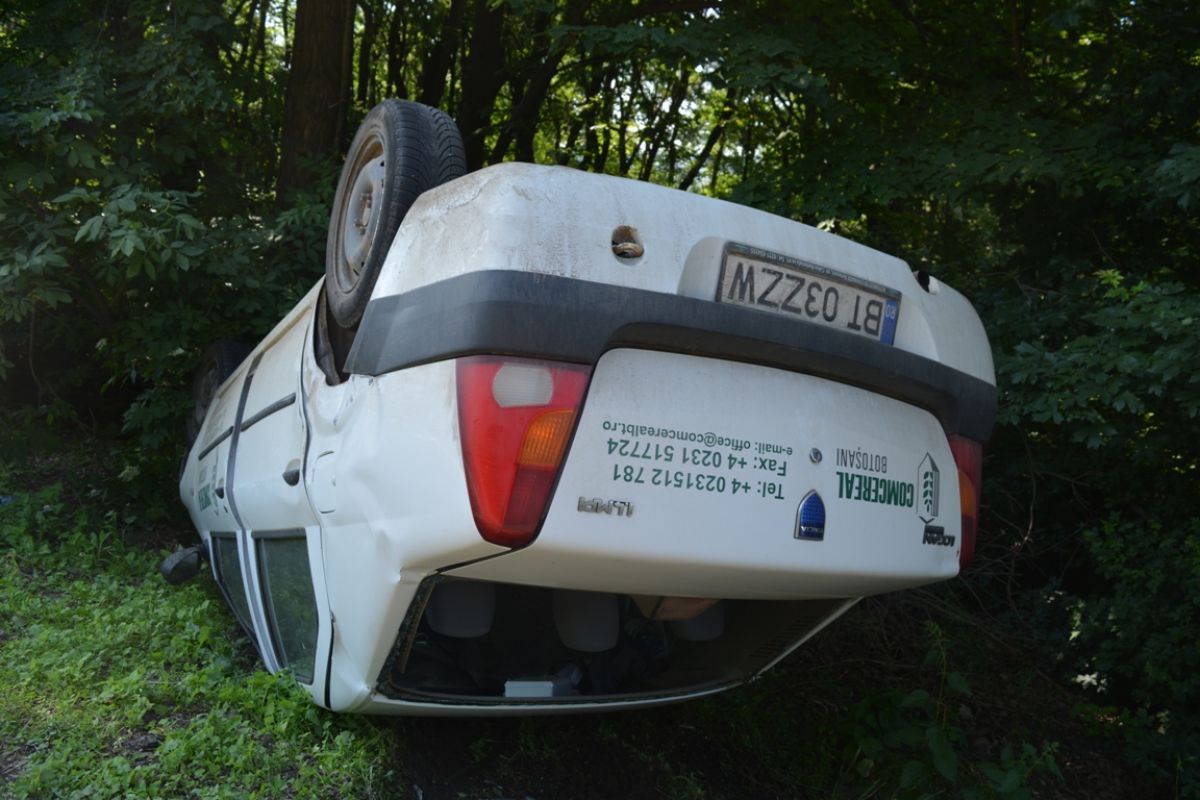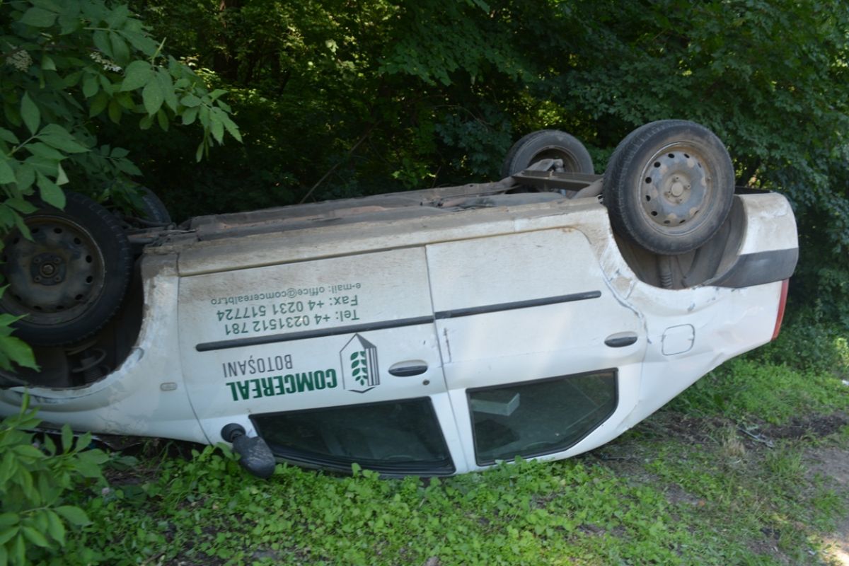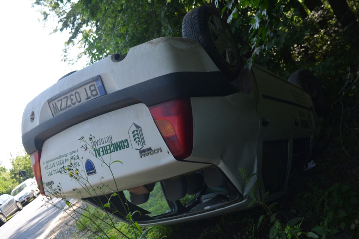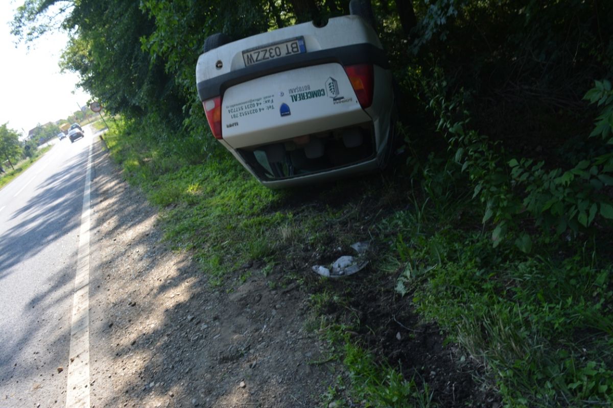 La faţa locului a sosit în scurt timp un echipaj de la SOS Botoşani venit să ridice Loganul răsturnat în şanţ. (S.B.)