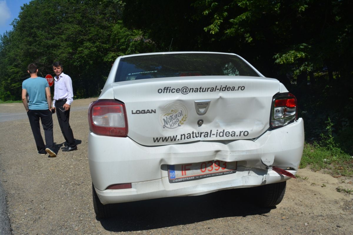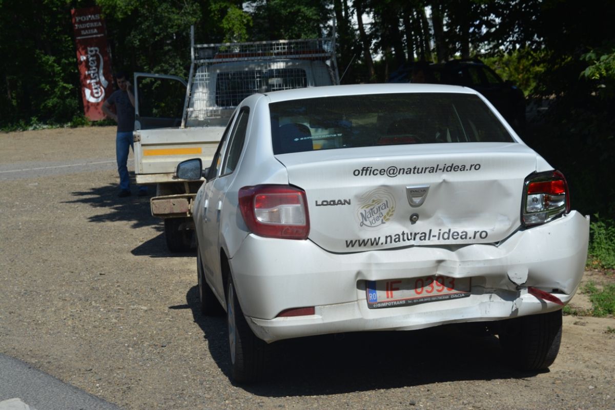 Aceasta era puţin avariată în faţă, în timp ce Loganul avea urme serioase de la impact în spate.