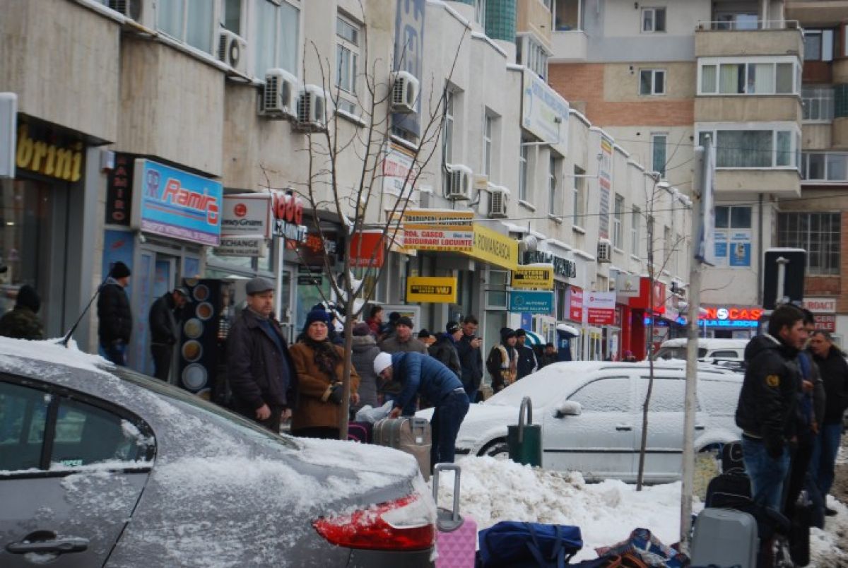 Zeci de persoane s-au adunat în centrul orașului pentru a se urca în autocarele care iau săptămânal la cutreierat drumurile Europei. Cel de dimineață avea destinația Italia.